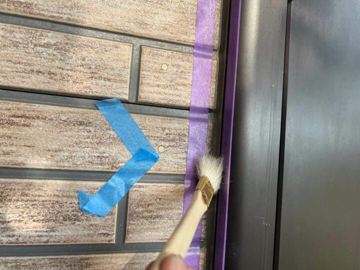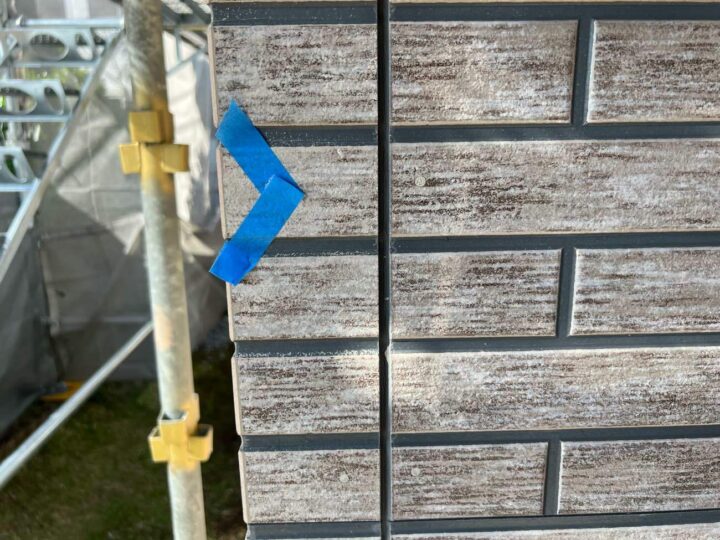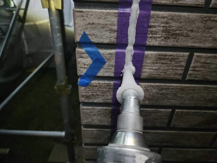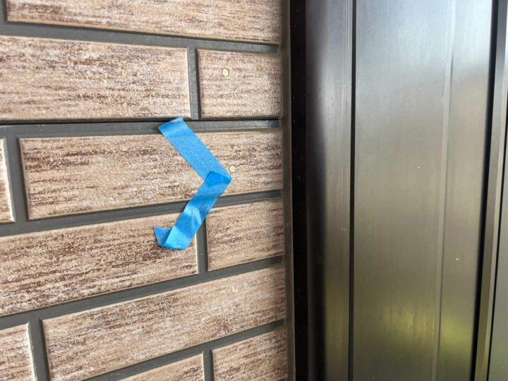 この時外壁にはみ出してしまわぬよう、両サイドに紙テープで養生しています。