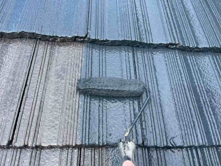 屋根材の種類や下地の状態に応じて、適切な下塗り材を使用します。下塗りは、下地と塗料の密着度を高める役割と下地を整える効果があります。