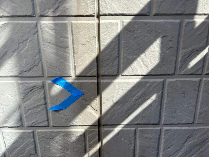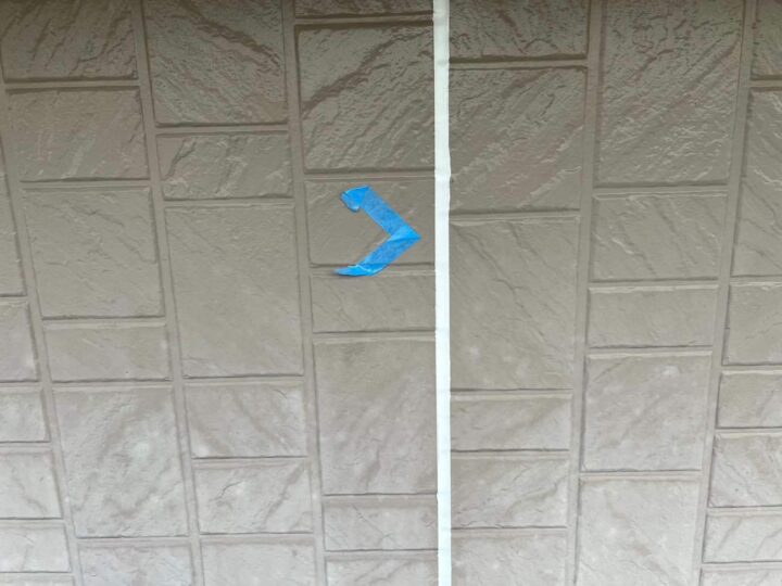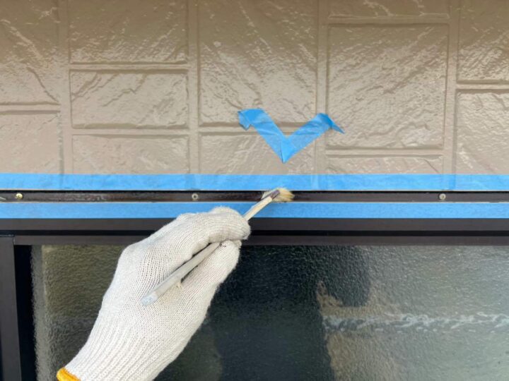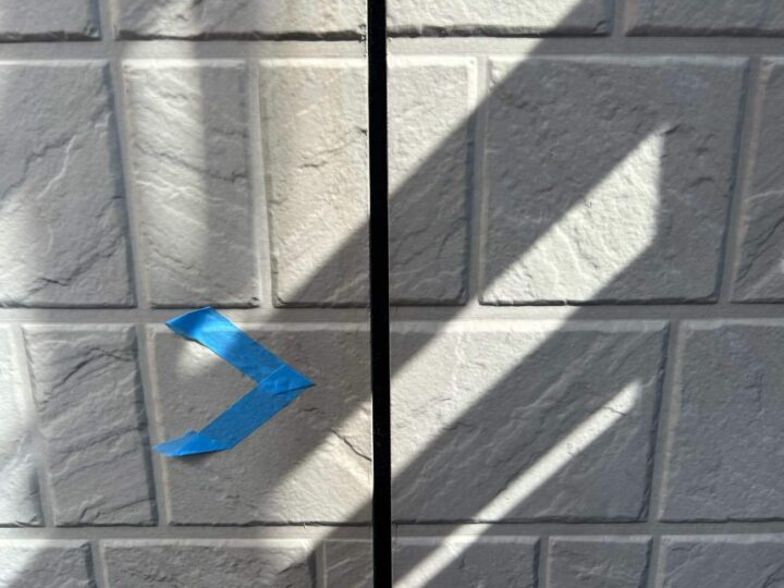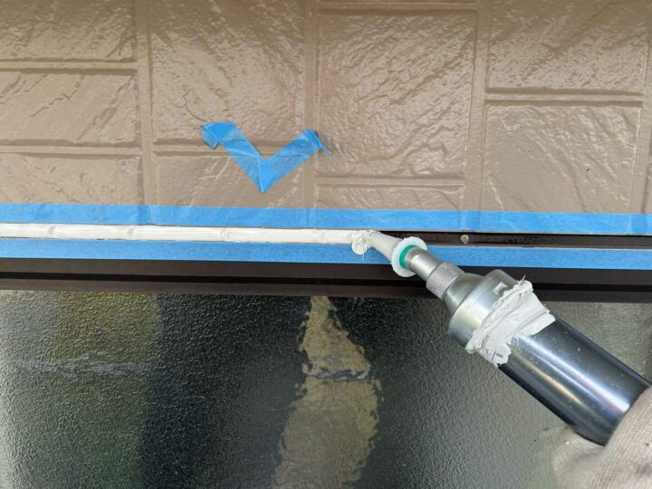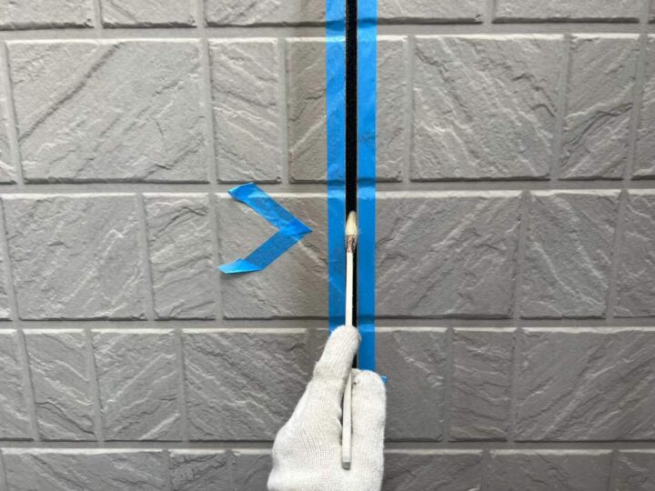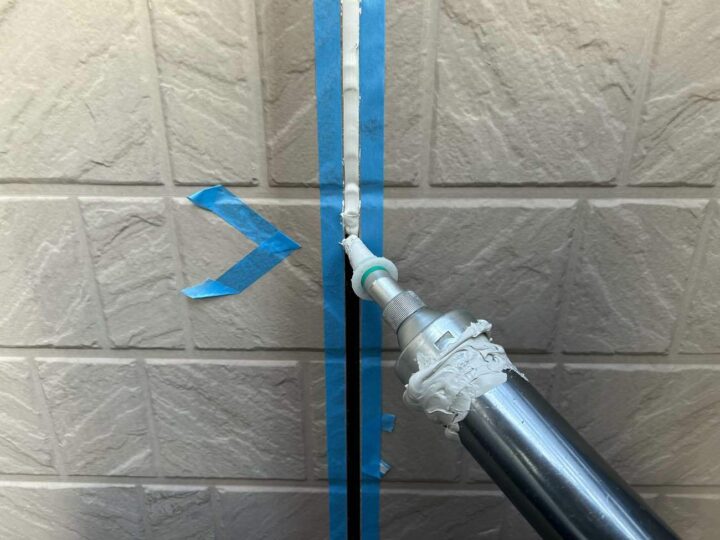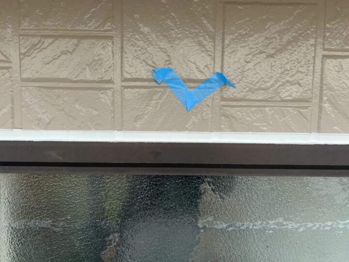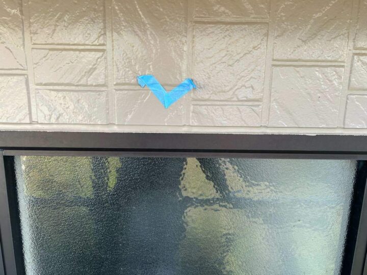 この時外壁にはみ出してしまわぬよう、両サイドに紙テープで養生しています。