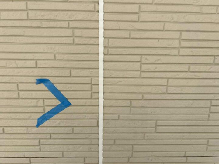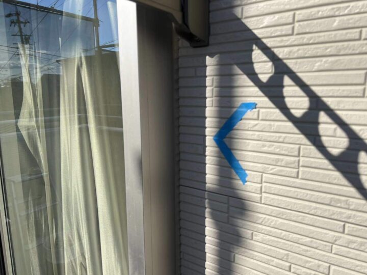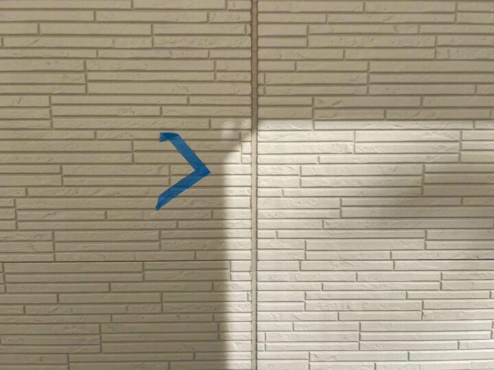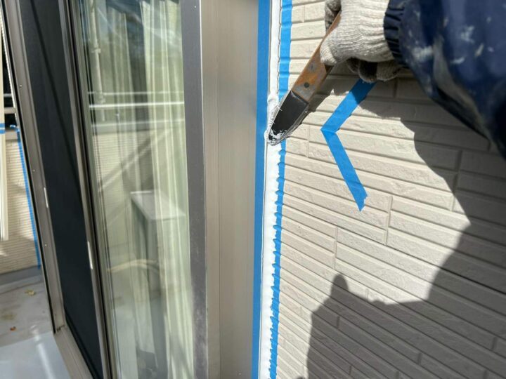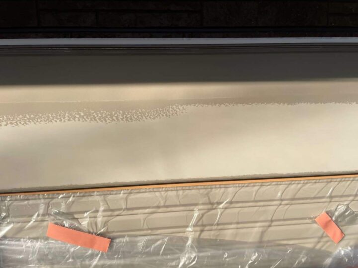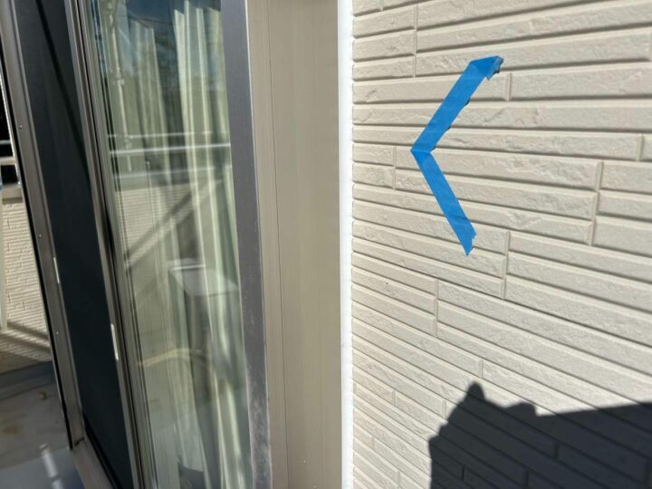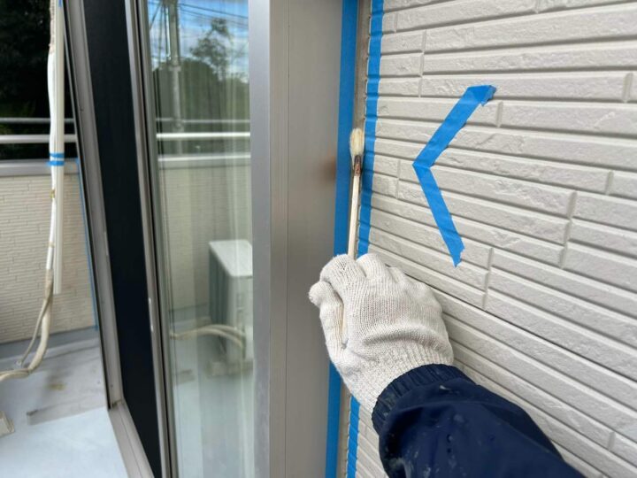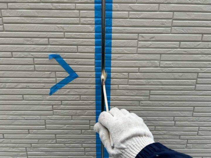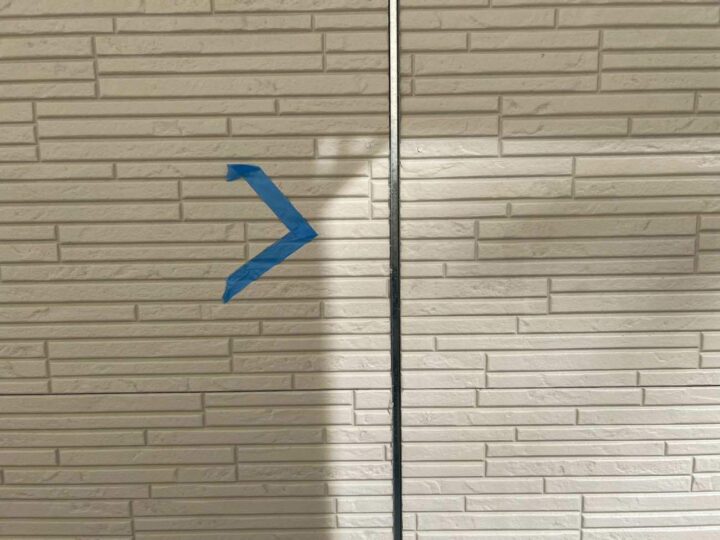 この時外壁にはみ出してしまわぬよう、両サイドに紙テープで養生しています。