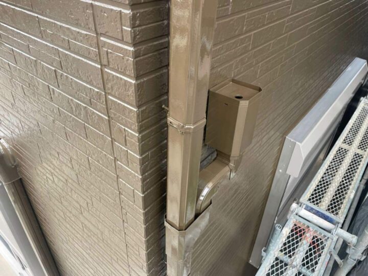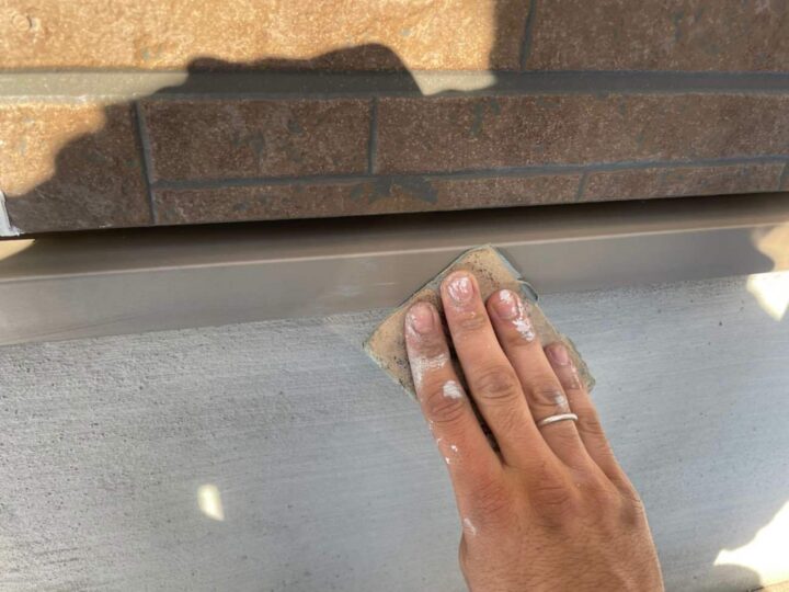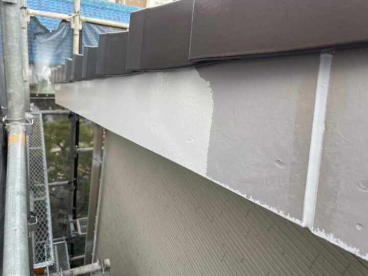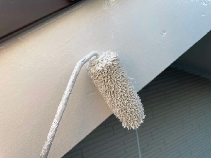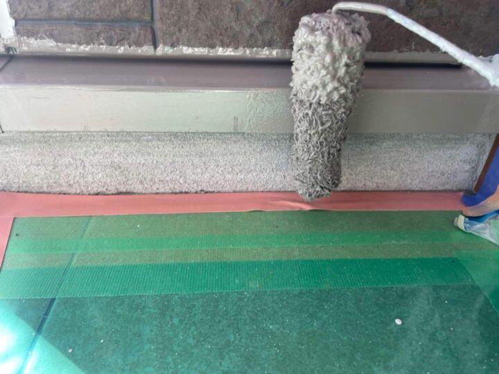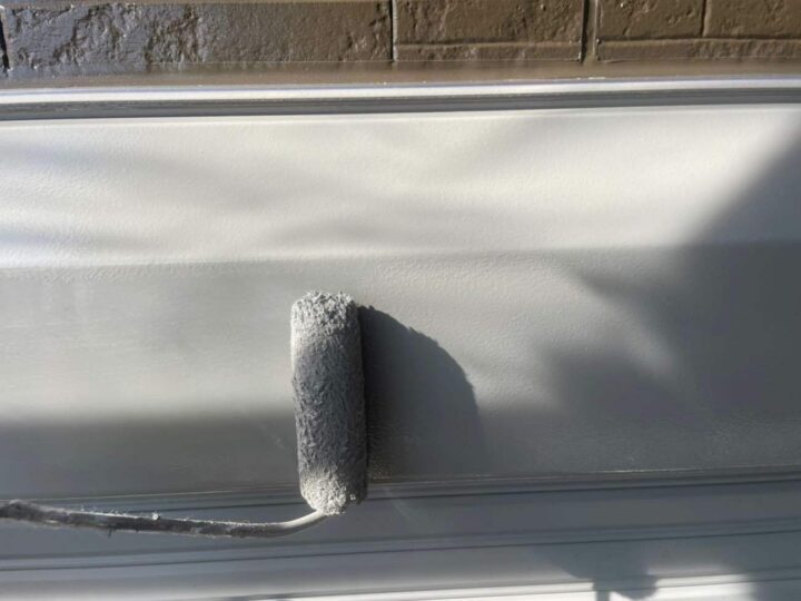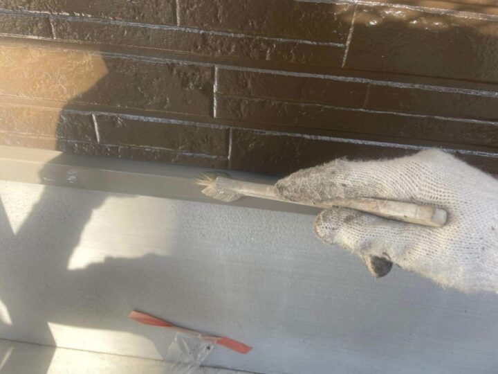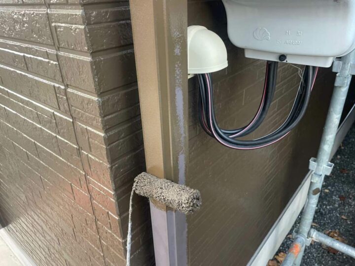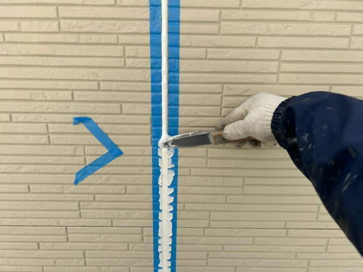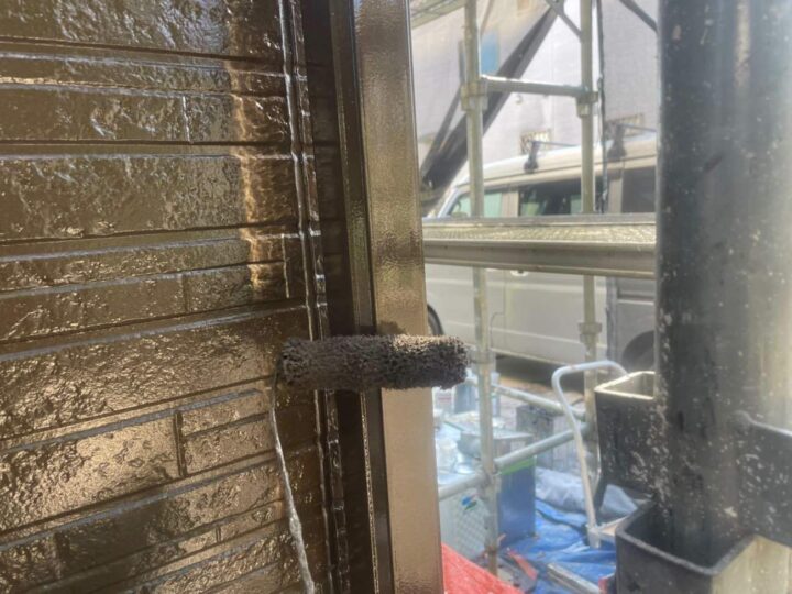 この時外壁にはみ出してしまわぬよう、両サイドに紙テープで養生しています。