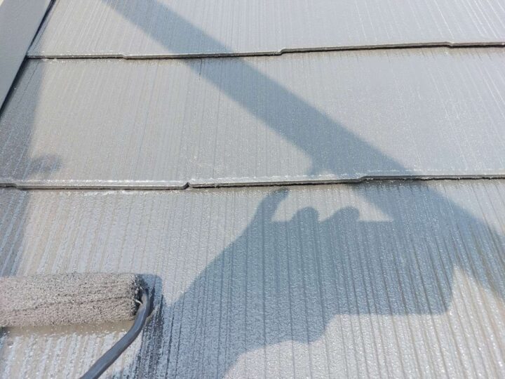 屋根材の種類や下地の状態に応じて、適切な下塗り材を使用します。下塗りは、下地と塗料の密着度を高める役割と下地を整える効果があります。