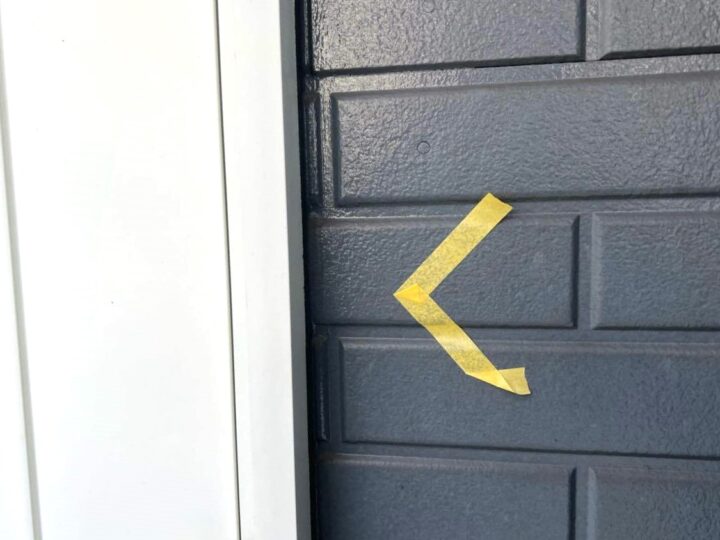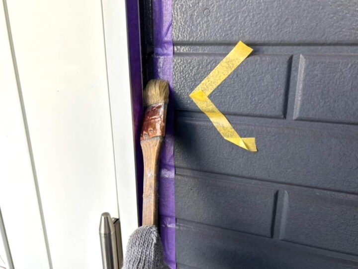 この時外壁にはみ出してしまわぬよう、両サイドに紙テープで養生しています。