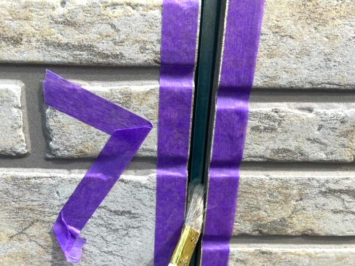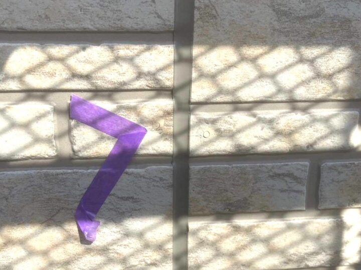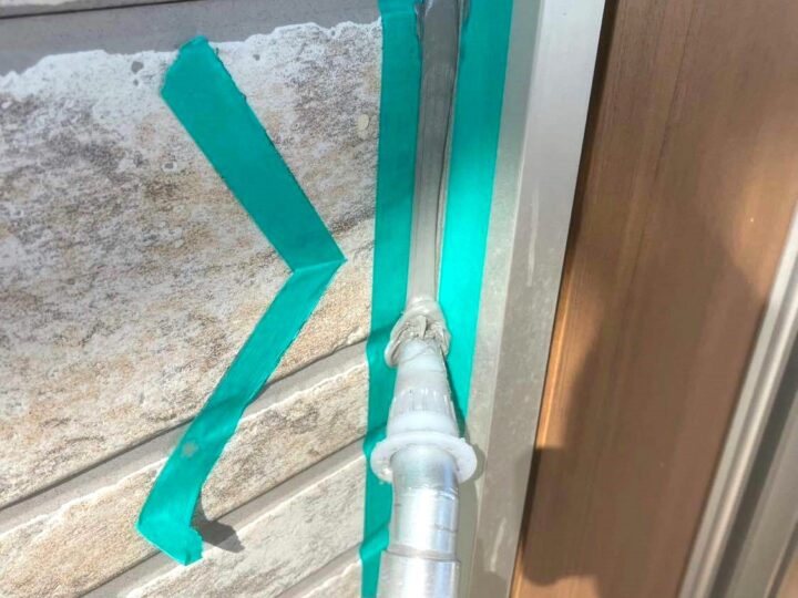 この時外壁にはみ出してしまわぬよう、両サイドに紙テープで養生しています。