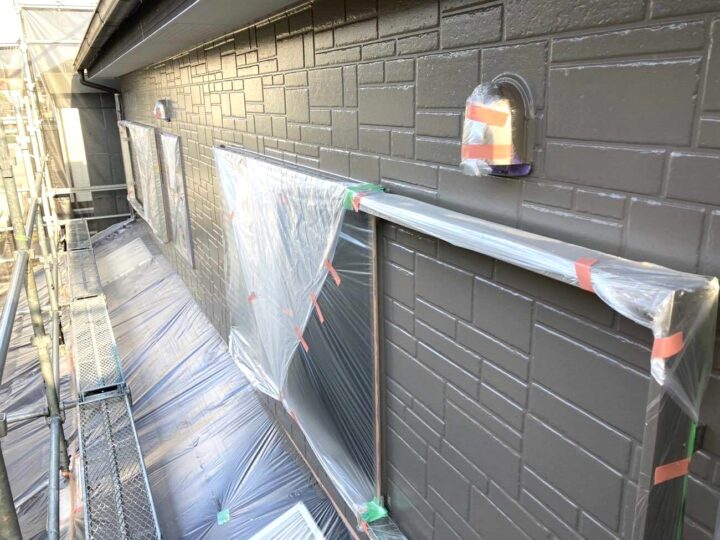 汚してはならないところに塗料が飛散しないよう、細心の注意を払って養生しています。こうした部分のひと手間が、塗装後の仕上がりを大きく変えるポイントです。