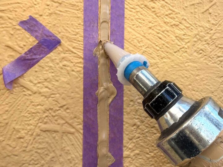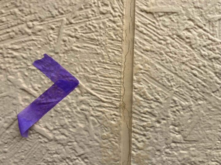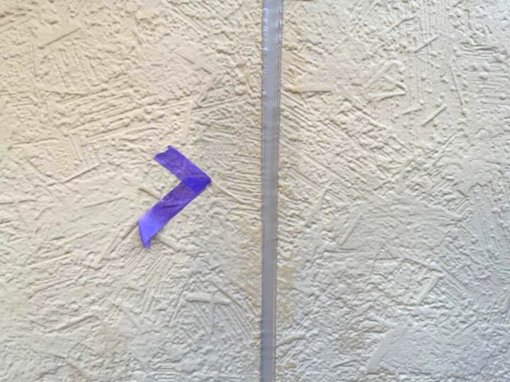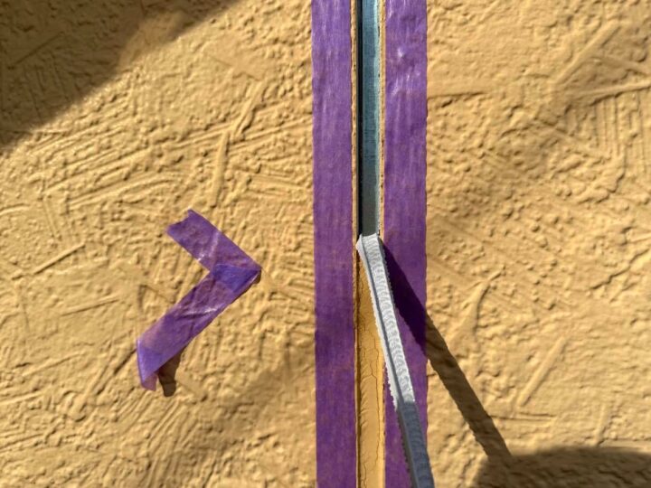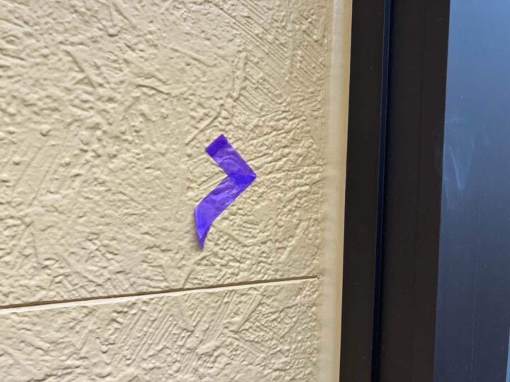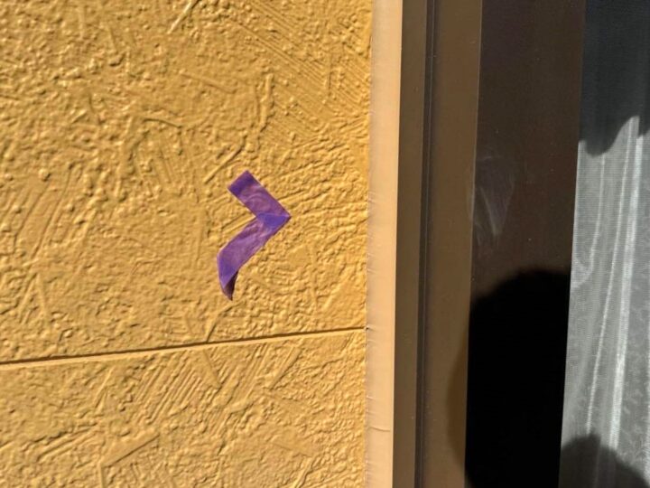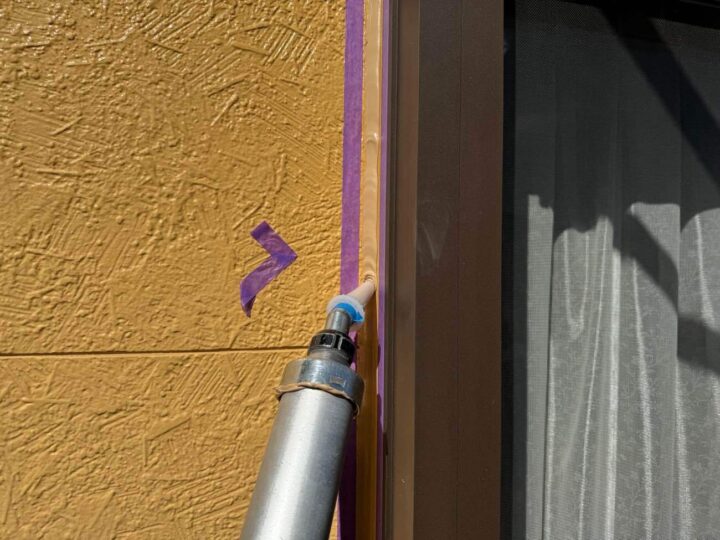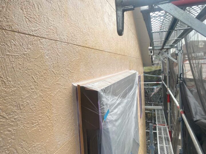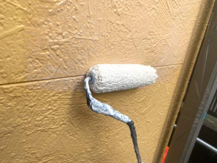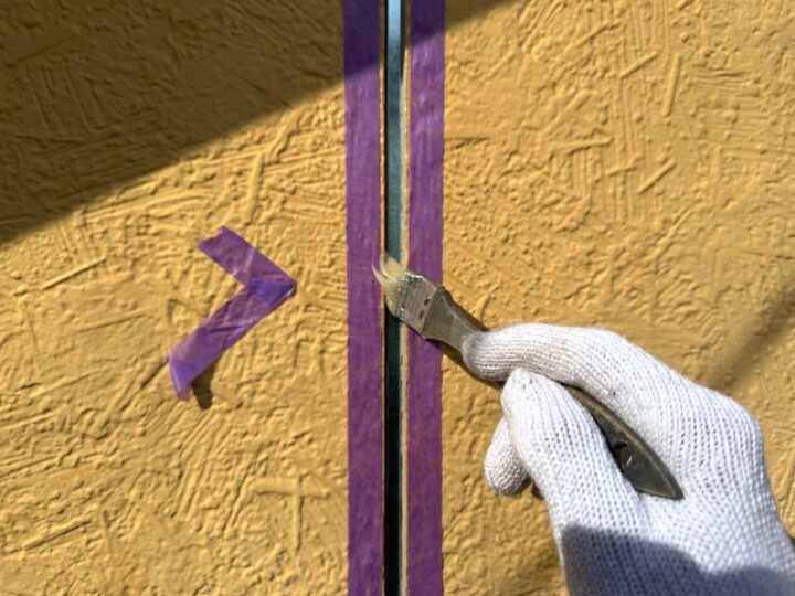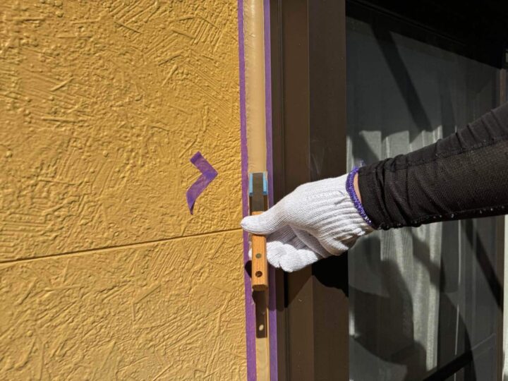 この時外壁にはみ出してしまわぬよう、両サイドに紙テープで養生しています。