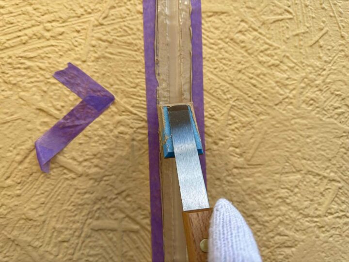 古いシーリング材の撤去。