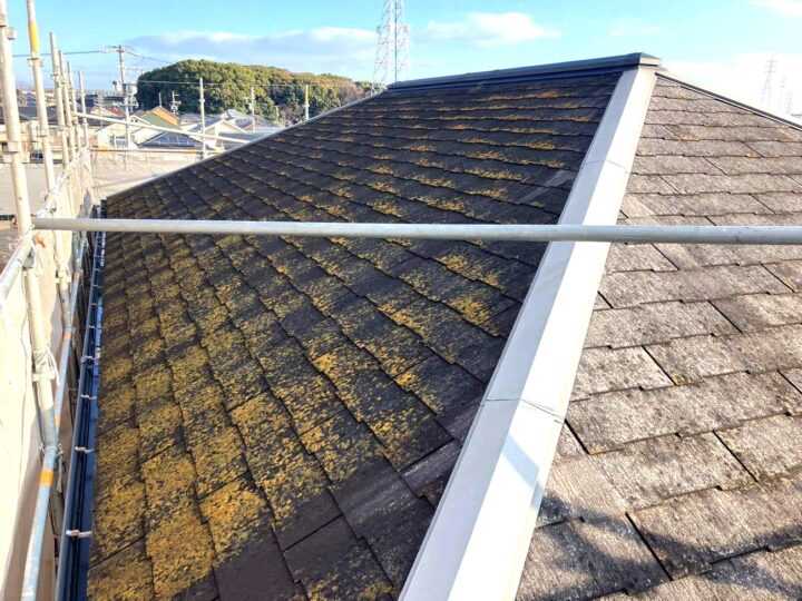 最後に棟板金を取り付けて上貼り工事は完了です。