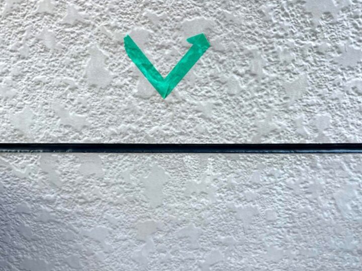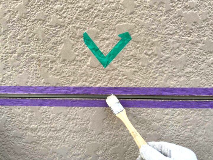 この時外壁にはみ出してしまわぬよう、両サイドに紙テープで養生しています。