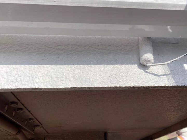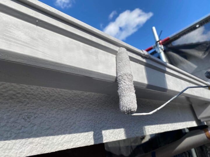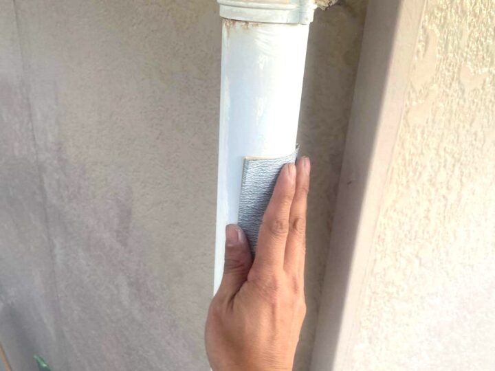 塩ビ(雨樋)や鉄部(雨戸・シャッターボックス・水切り等)は塗装前にケレンを行います。サビ落としや塗料の密着をよくする目的があります。