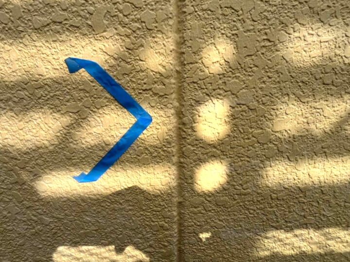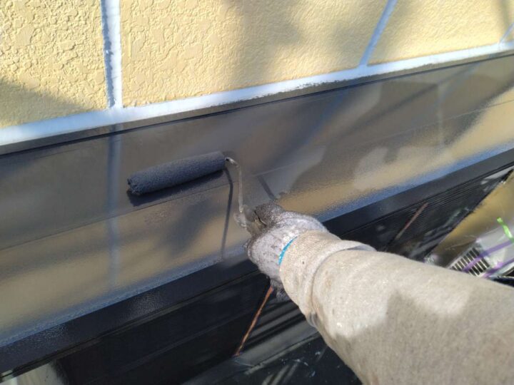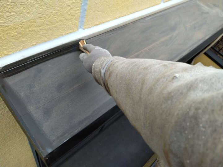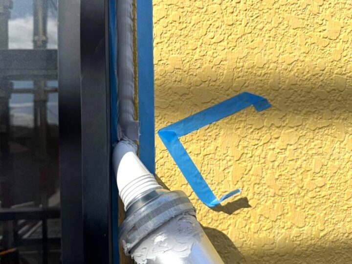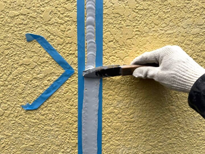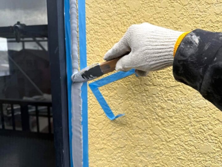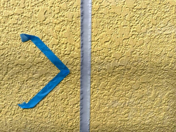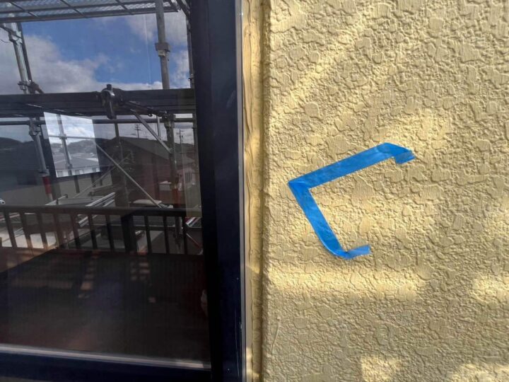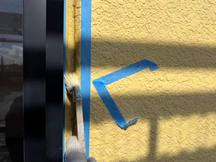 この時外壁にはみ出してしまわぬよう、両サイドに紙テープで養生しています。