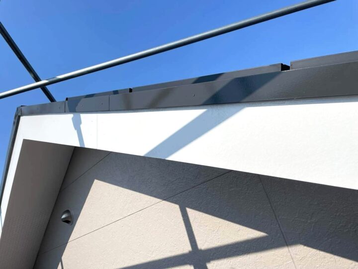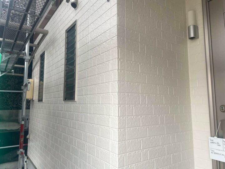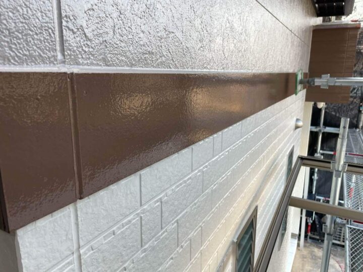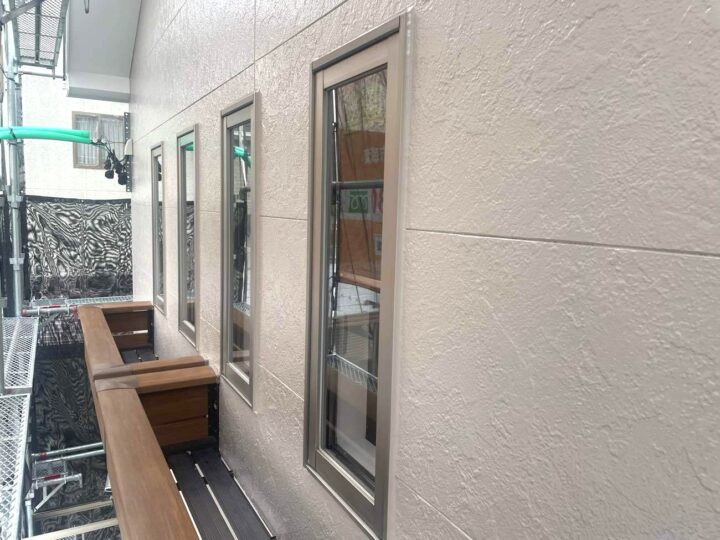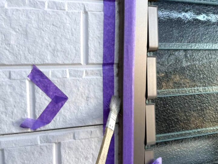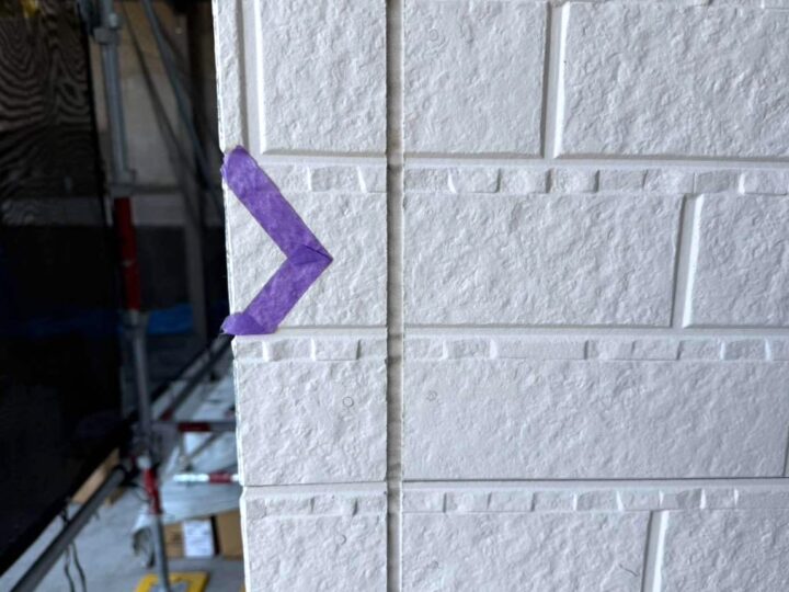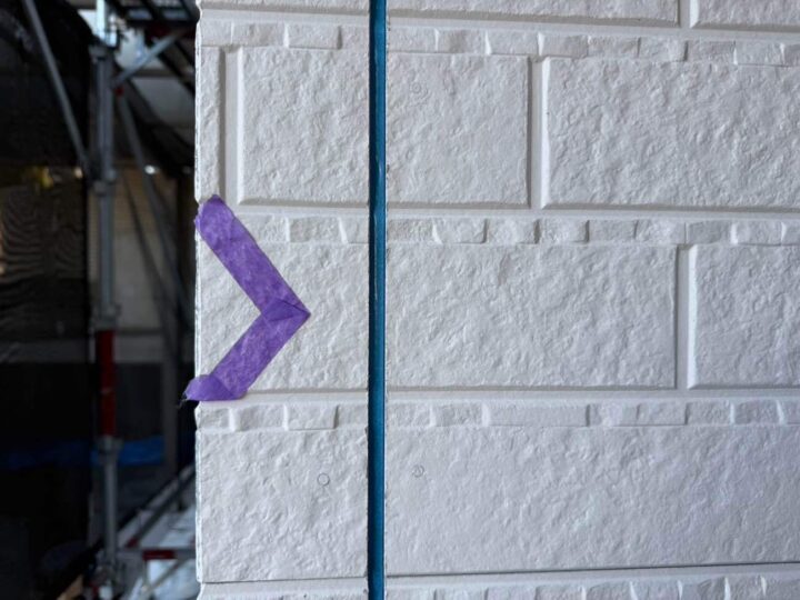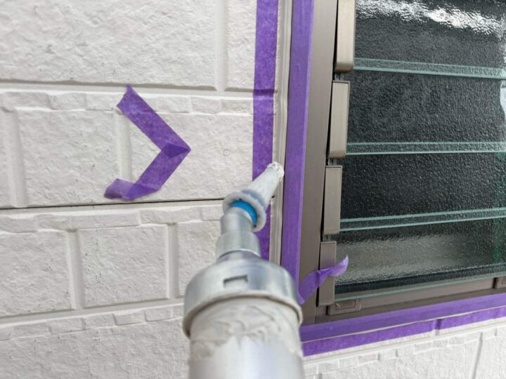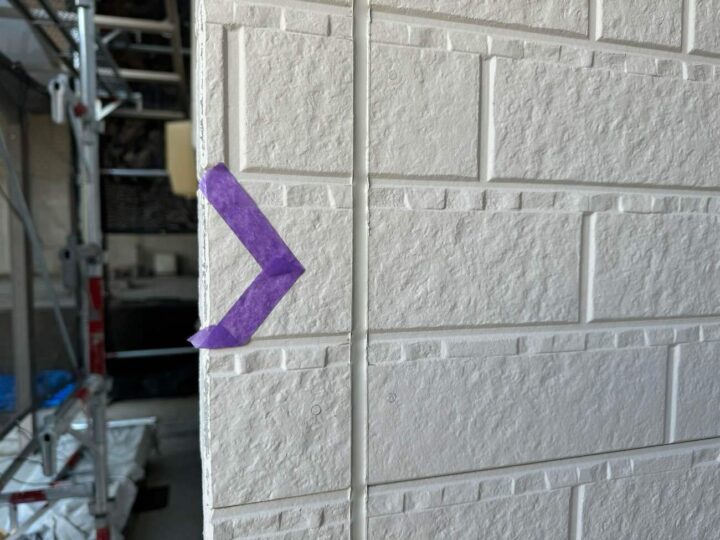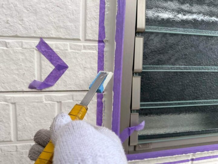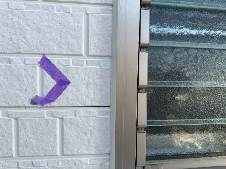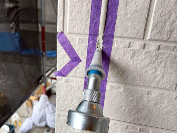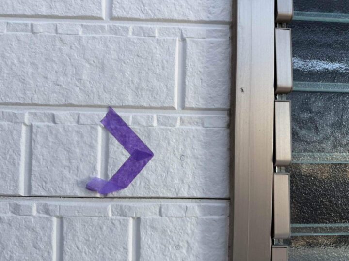 この時外壁にはみ出してしまわぬよう、両サイドに紙テープで養生しています。