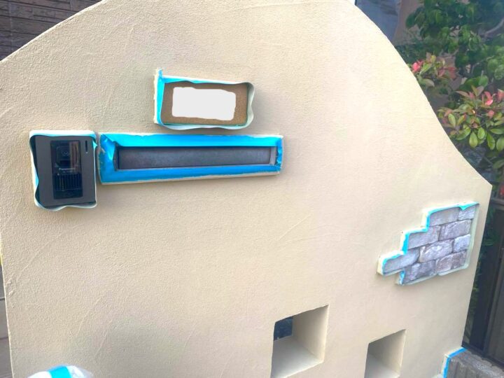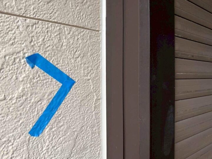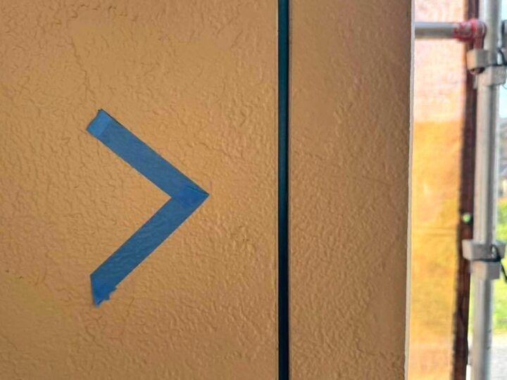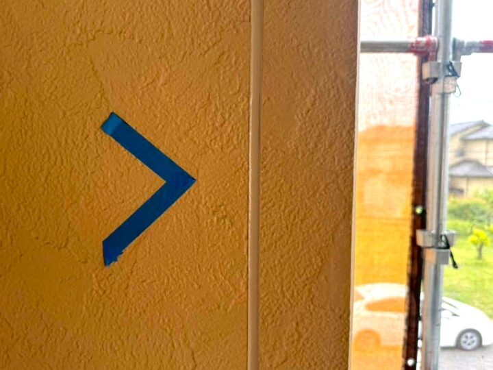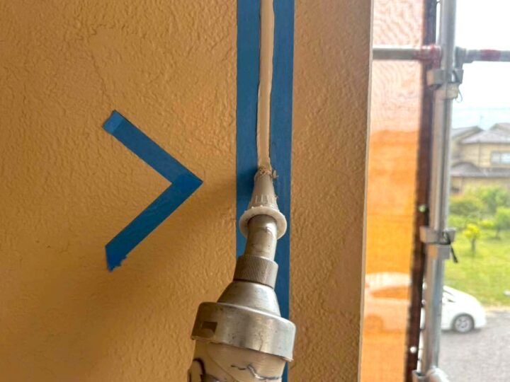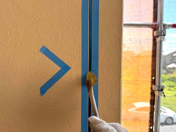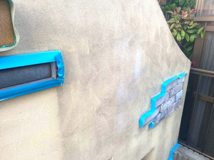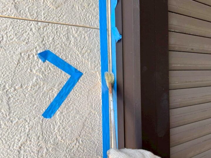 この時外壁にはみ出してしまわぬよう、両サイドに紙テープで養生しています。
