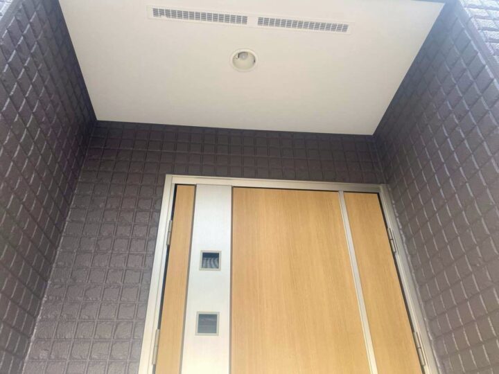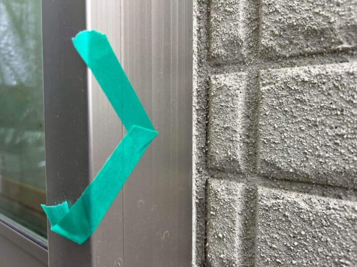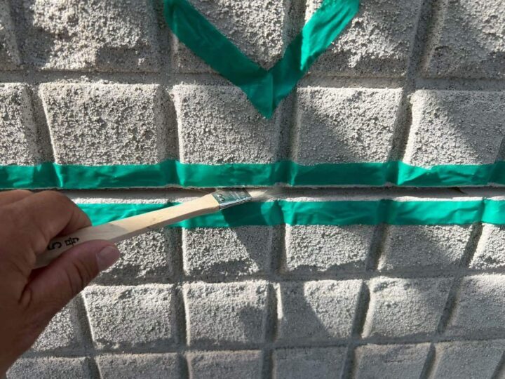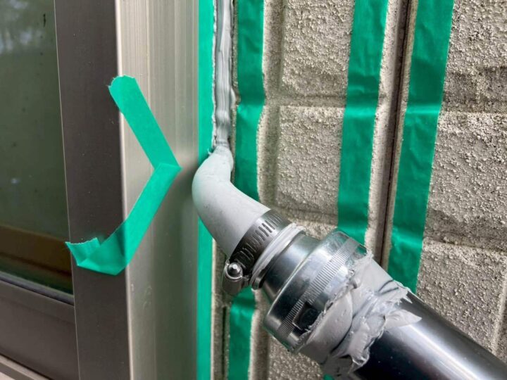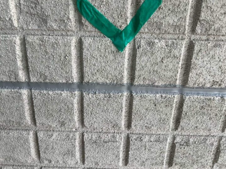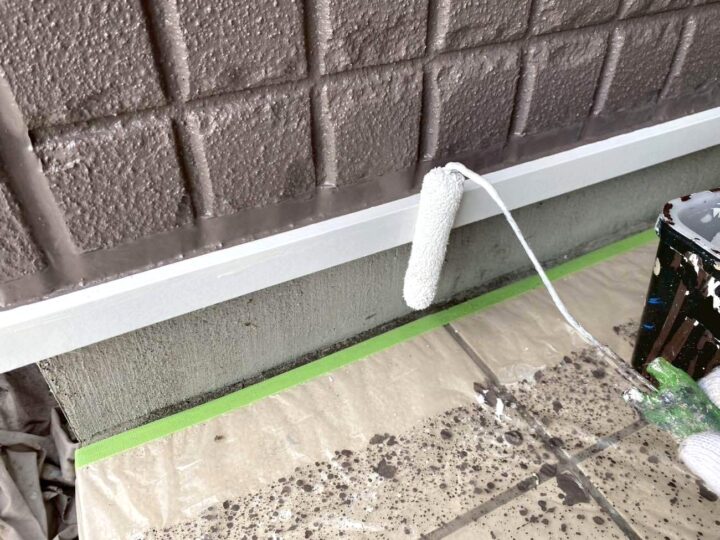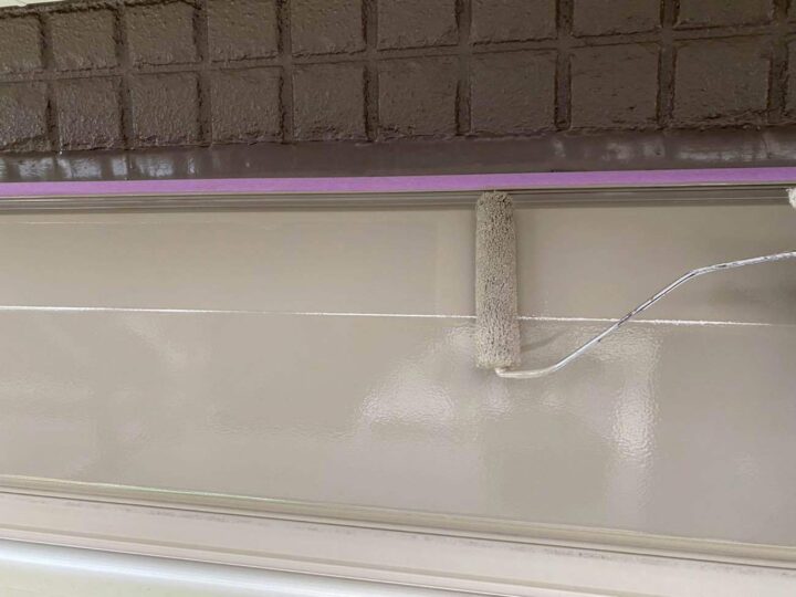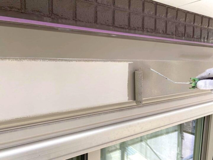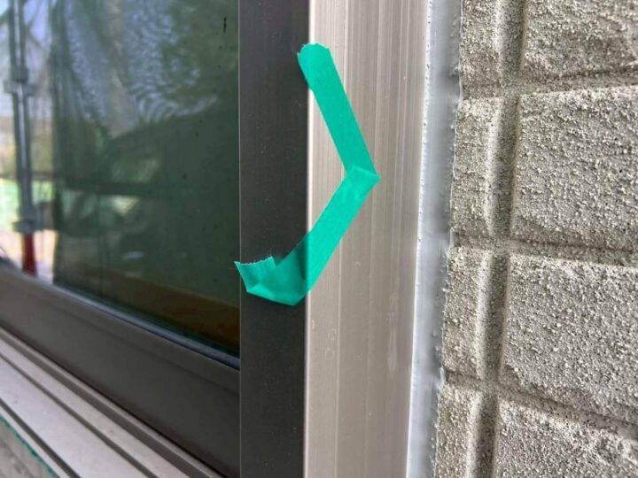 この時外壁にはみ出してしまわぬよう、両サイドに紙テープで養生しています。