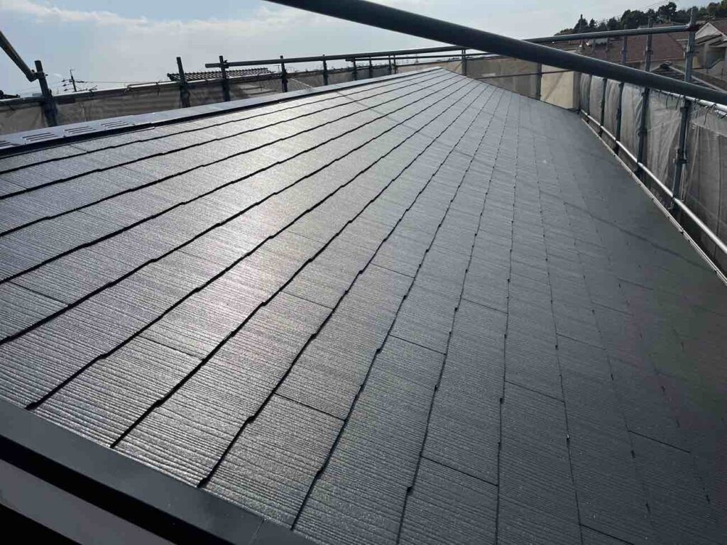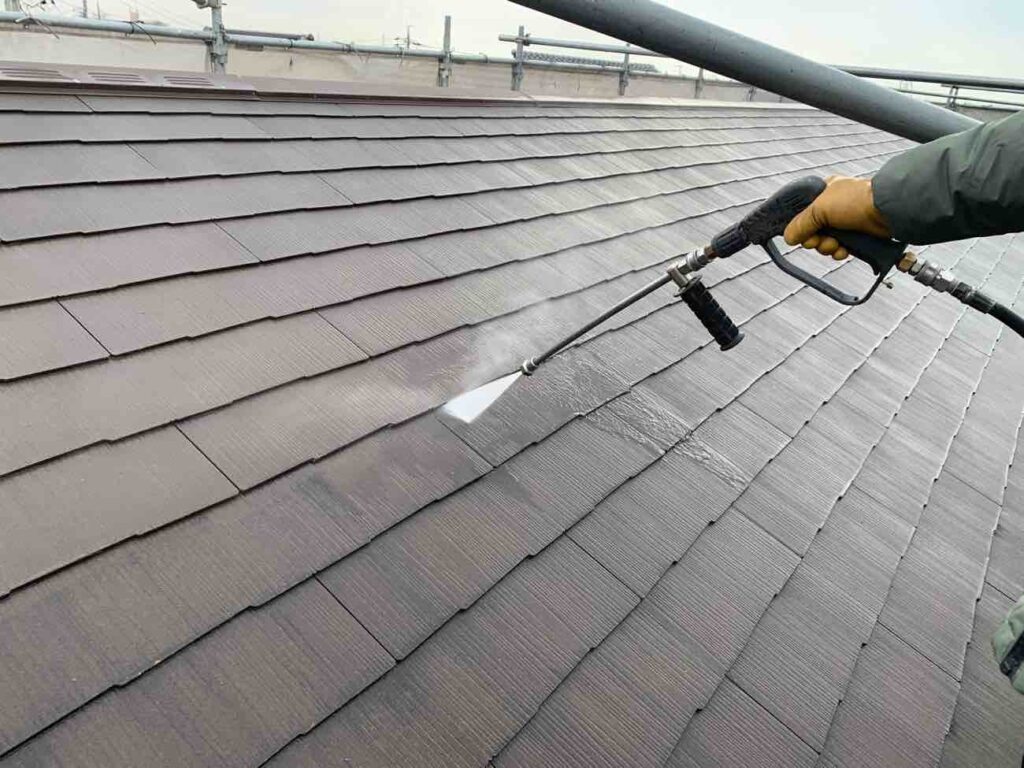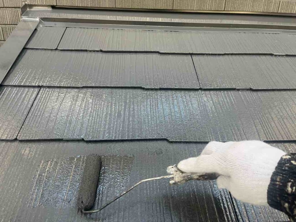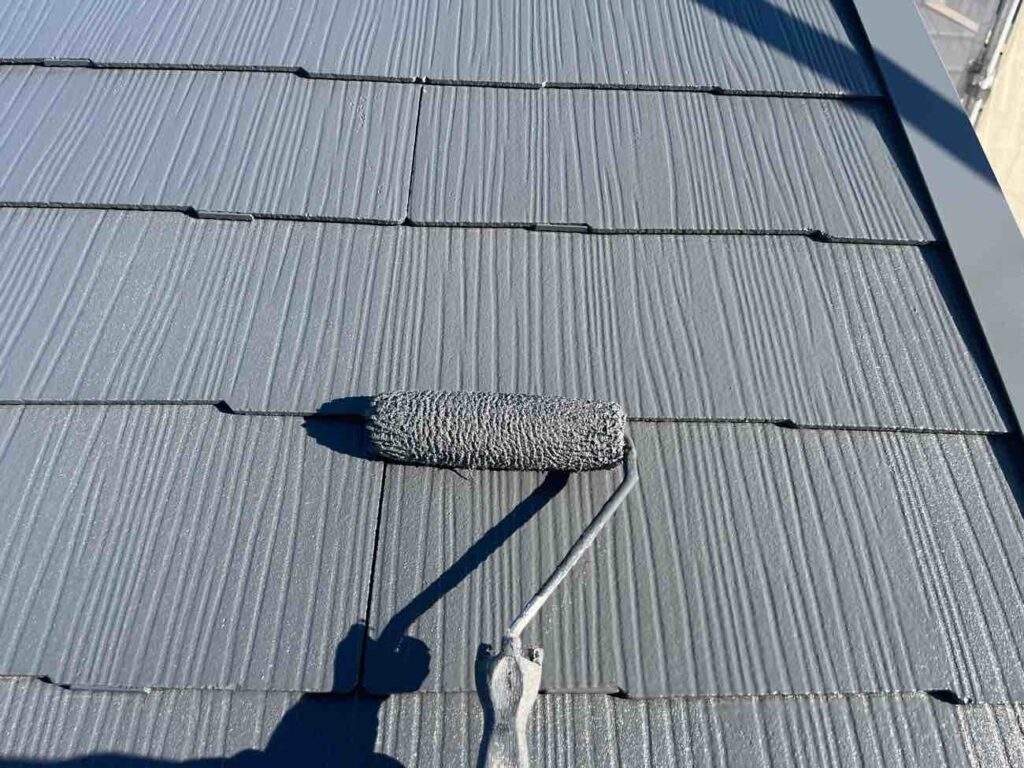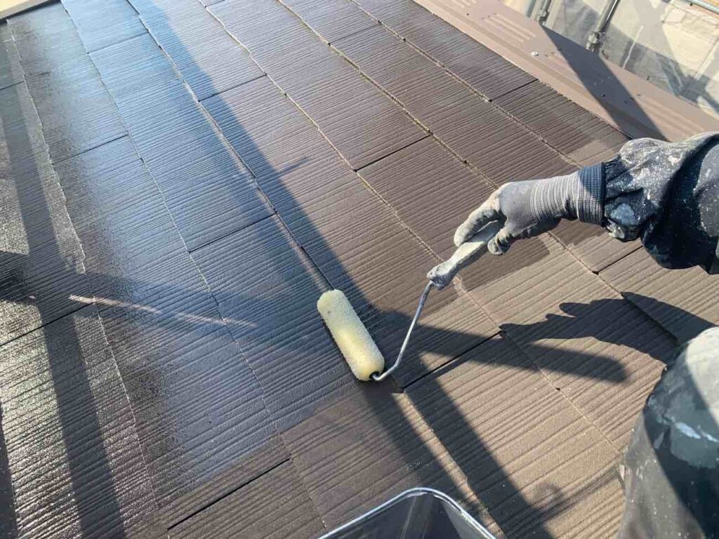 外壁塗装と同様、下塗り・中塗り・上塗りの三層構造で行います。下塗りでは屋根材に応じて、適切な下塗り材を使用します。中塗りで厚みの土台を作り、上塗りで外観と耐久性を完成させます。縁切り作業とは、屋根材の重なっている部分を塗膜でふさいでしまうの防ぐ作業です。縁切りをしないと水の逃げ道をふさぎ、雨漏りに繋がる場面もあります。