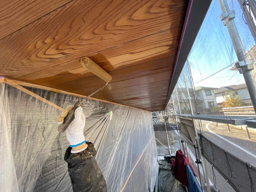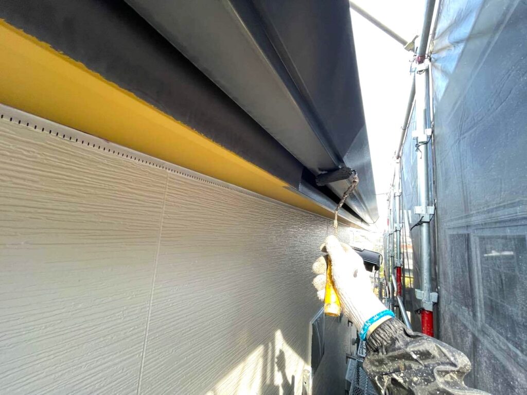 雨樋、破風板、軒天などの付帯部は、建物の輪郭を強調する重要なパーツです。外壁が綺麗になっても、ここが色褪せていると全体が引き締まりません。素材に合わせたケレン作業を行い、細かな傷をつけることで塗料の食いつきを良くします。特に雨樋などは塩ビ専用の塗料を使用し、美観維持と機能回復を同時に行います。