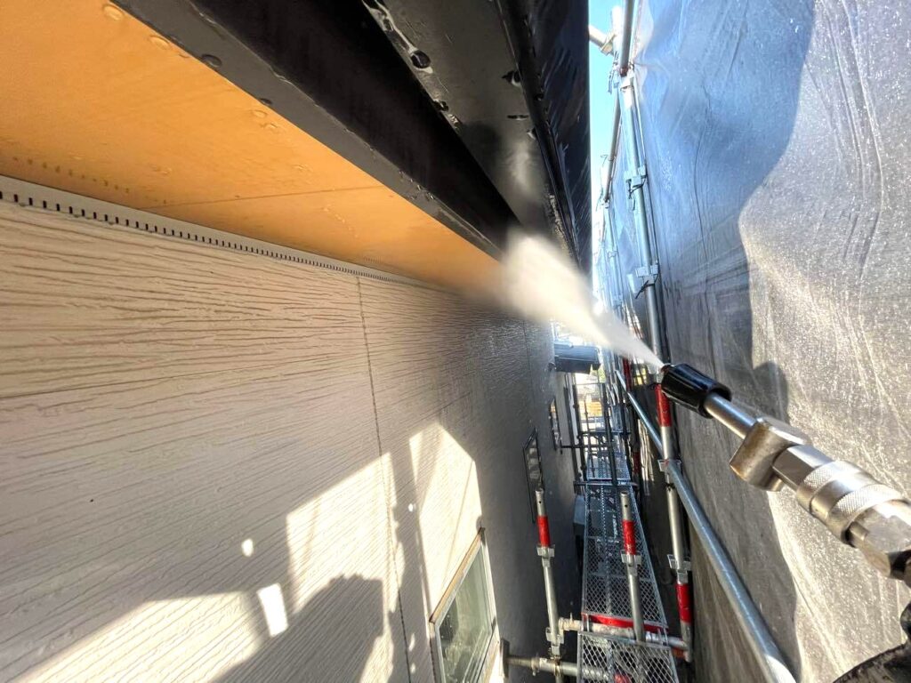 塗装の密着度を左右する最も重要な工程です。家庭用とは比較にならない15Mpa以上の超高圧洗浄により、長年蓄積した苔、藻、旧塗膜の死膜(チョーキング粉)を根こそぎ除去します。この洗浄が不十分だと、どんなに高級な塗料を使っても早期剥離の原因となります。塗装屋ひらまつでは、下地が完全に乾くまで時間を置く「乾燥工程」までをセットとし、完璧な塗装ベースを作ります。
