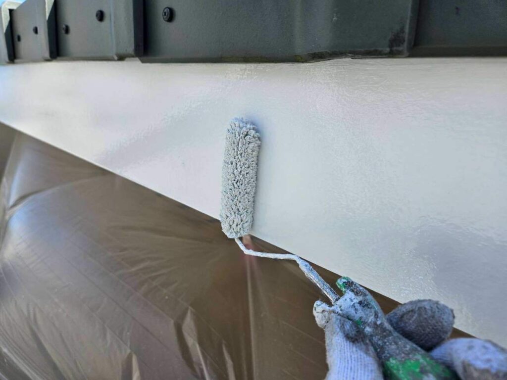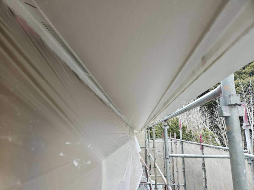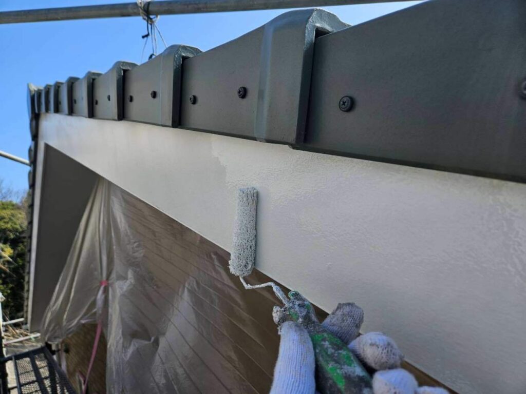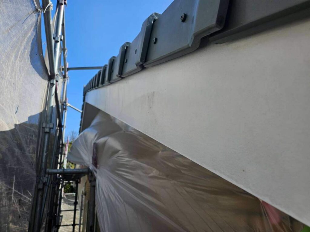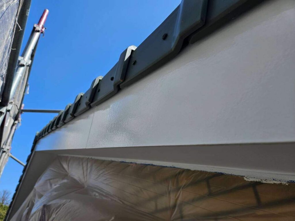 鼻隠し・破風など外壁以外の部分もあわせて塗装を行いました。付帯部は紫外線や雨風の影響を受けやすいため、下地処理を丁寧に行い、上塗りを2回重ねて耐久性とツヤを確保しています。外壁だけでなく付帯部も整えることで、住まい全体の印象がグッと引き締まります。