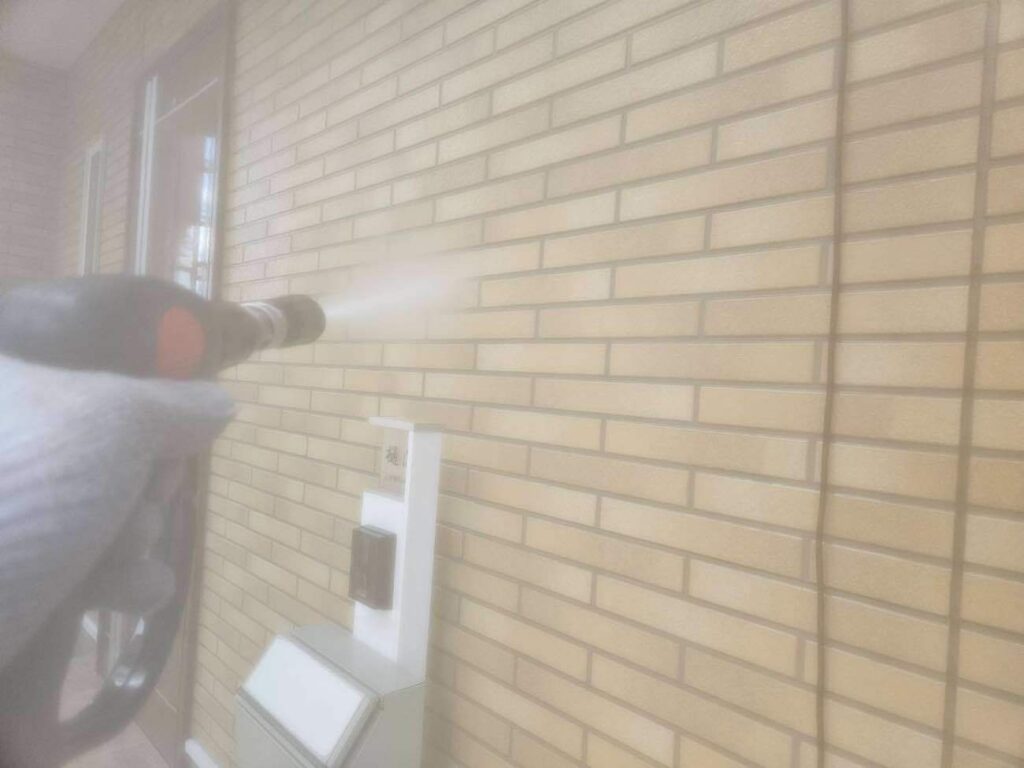 まずは高圧洗浄で汚れやコケを落としていきます。クリヤーは透明なので、汚れ、傷などが残っているとすべて透けて見えるため「下地処理の丁寧さ」が仕上がりに影響します。下塗りで外壁と塗装を密着させ、上塗りでツヤ・保護性能の強化、膜厚を確保し、対候性をあげる仕上げをしていきます。