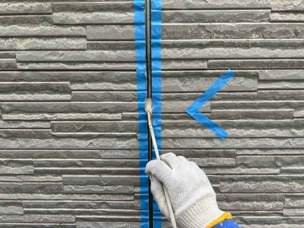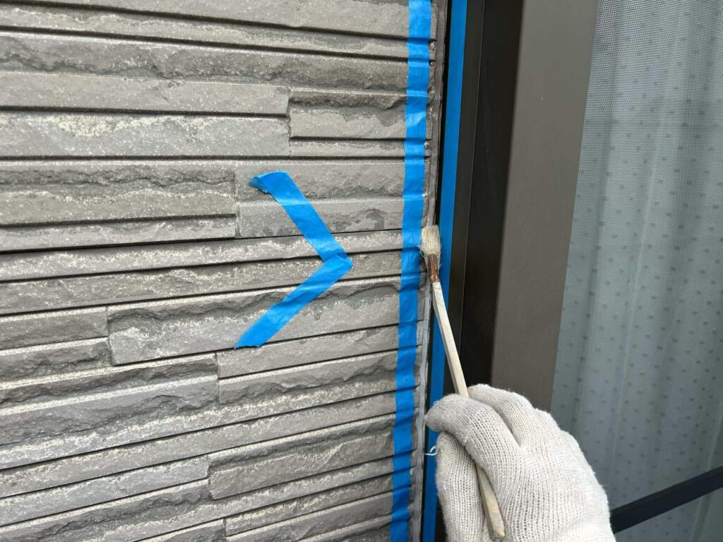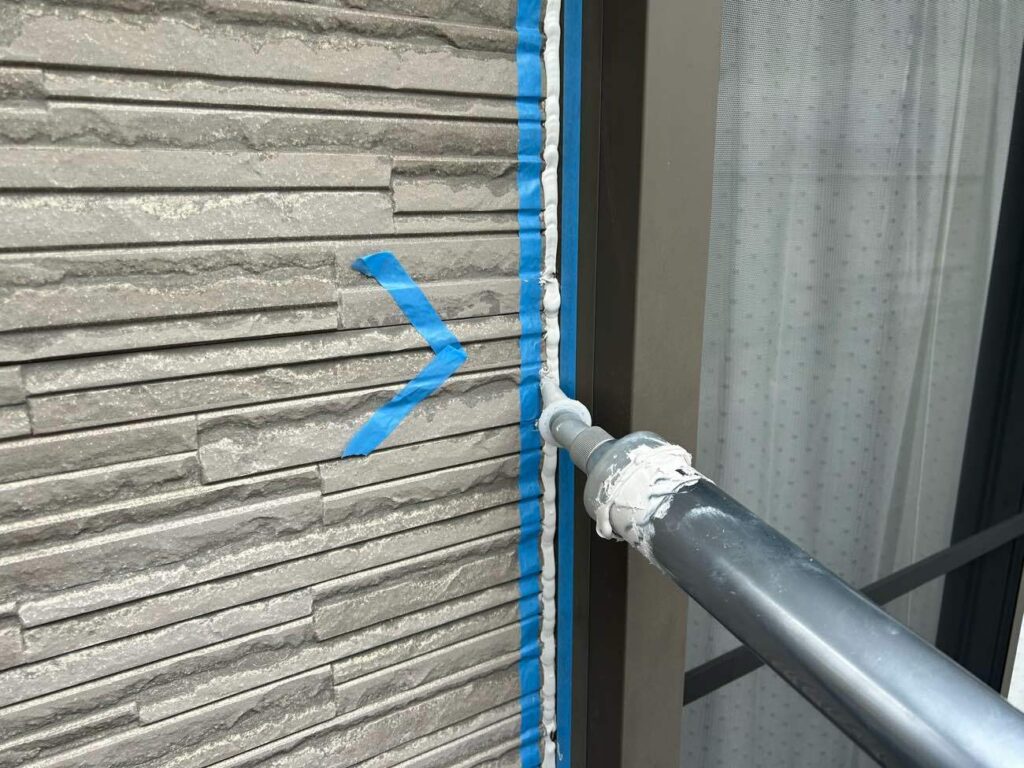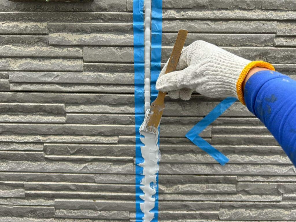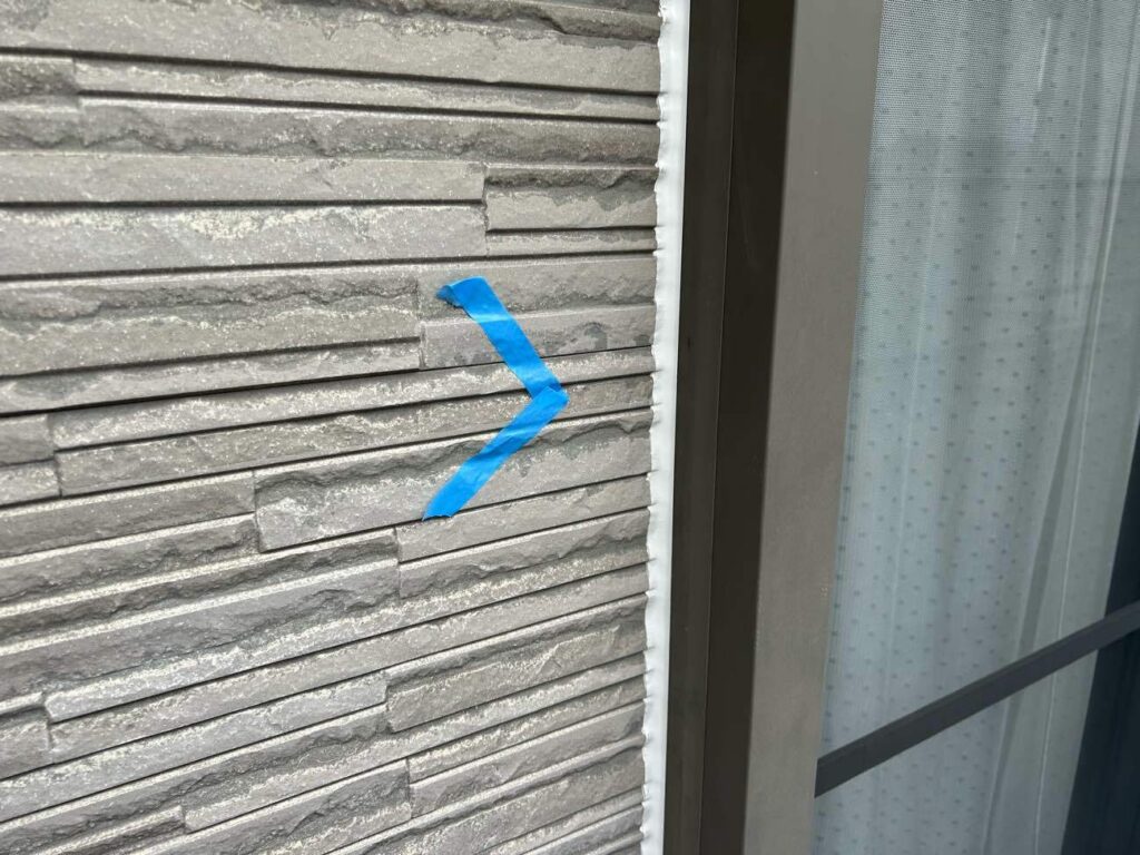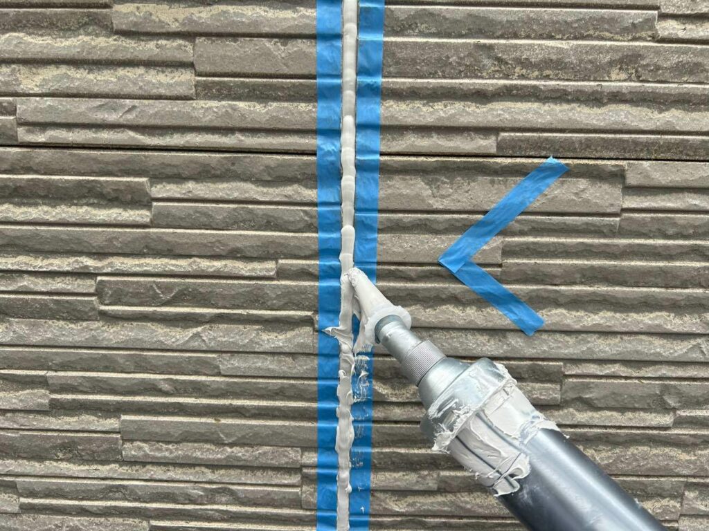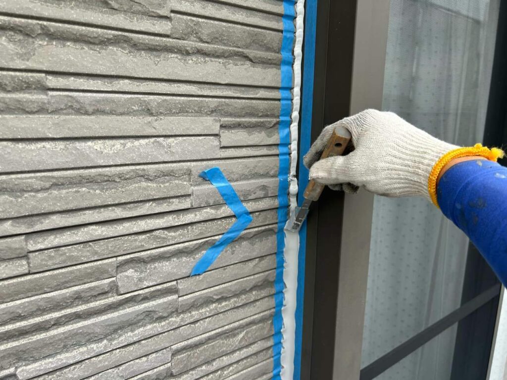 古いシーリング材を取り除き、新しい材料を充填していきます。まずマーキングで劣化箇所を示し、マスキングテープで目地以外を丁寧に養生。