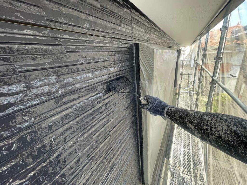 外壁塗装は「3回塗り」で行われます。塗装は一度にたくさん塗るとムラがでたり、剝れやすくなったりするため、下塗りで下地を整え、中塗りで色の土台と膜厚を形成し、上塗りで光沢・耐久性・防水性を仕上げていきます。適切な膜厚が確保されないとどんな高級塗料を使っても本来の対候性を発揮できません。1回ずつしっかり乾燥させながら3回に分けて塗り重ねることで均一で強い塗膜をつくることができます。