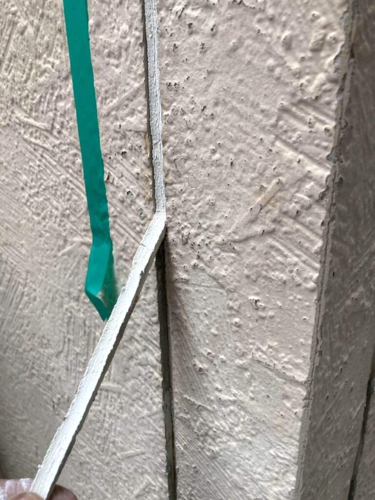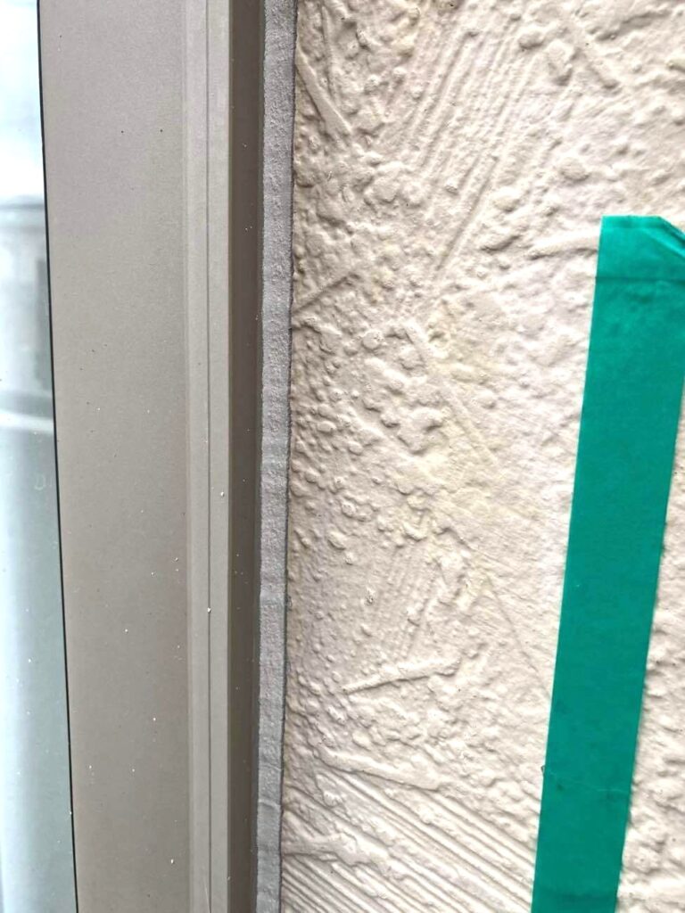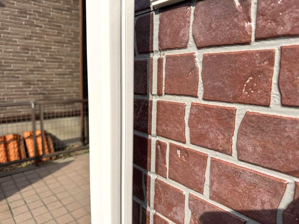 玄関ドアや勝手口などの開口部と外壁の取り合い部のコーキング(シーリング)下地処理を行います。構造上、性質の異なる建材が接するこの箇所には、必ず隙間が生じます。