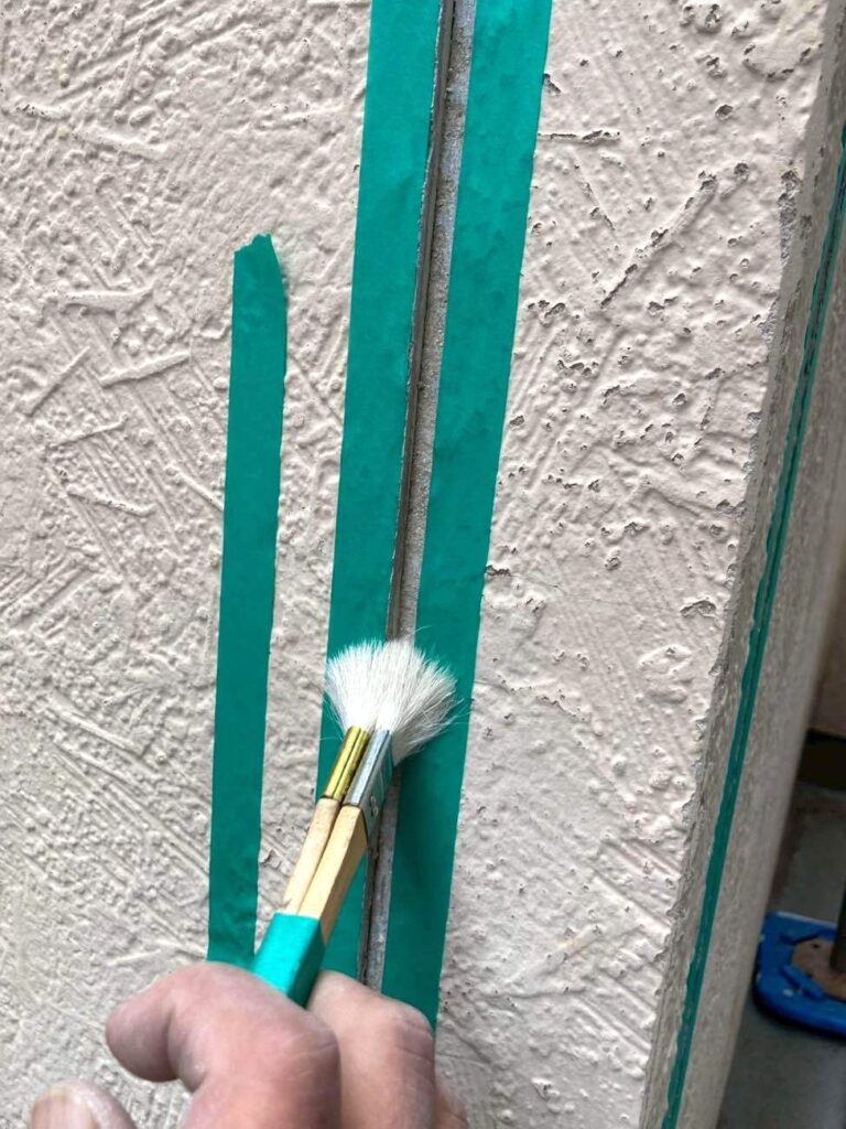 まず、劣化した古いシーリング材を全て除去し、目地以外の箇所をマスキングテープで丁寧に養生します。次に、新しい材料と外壁との密着性を高めるためのプライマーを塗布します。古いカスの徹底除去や、プライマーの均一な塗布を確認した後、新しいシーリング材をムラなく充填し、ヘラで均一にならす精密な技術を発揮します。この専属のプロ職人による確かな施工により、高い防水性と長期的な耐久性が確保され、外壁を長期間守るというメリットが得られます。