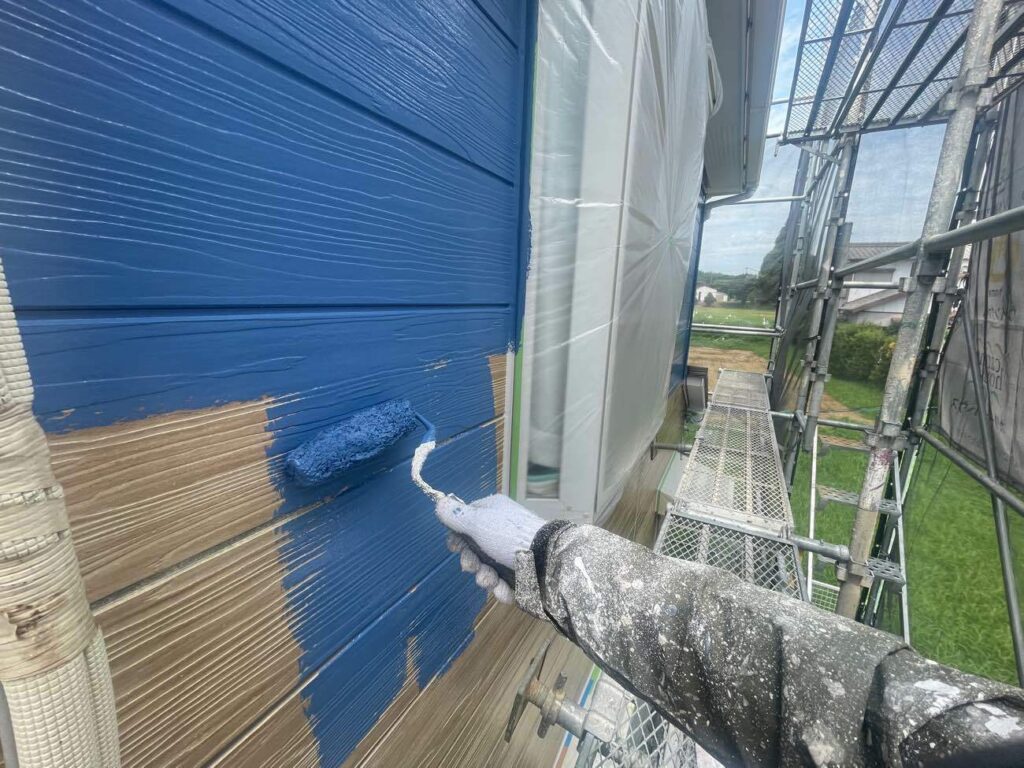 今回の塗装工事では、建物の印象を大きく変えるため、ブルー系へカラーチェンジしました。深みのある青は、落ち着きと重圧感を演出すると同時に。建物全体を引き締めて見せる効果があります。また、濃色は汚れが目立ちにくく、倉庫や事業用建物にも適した色合いです。美観だけでなく、耐久性にも配慮した塗装で、長く安心して使えるように仕上げました。