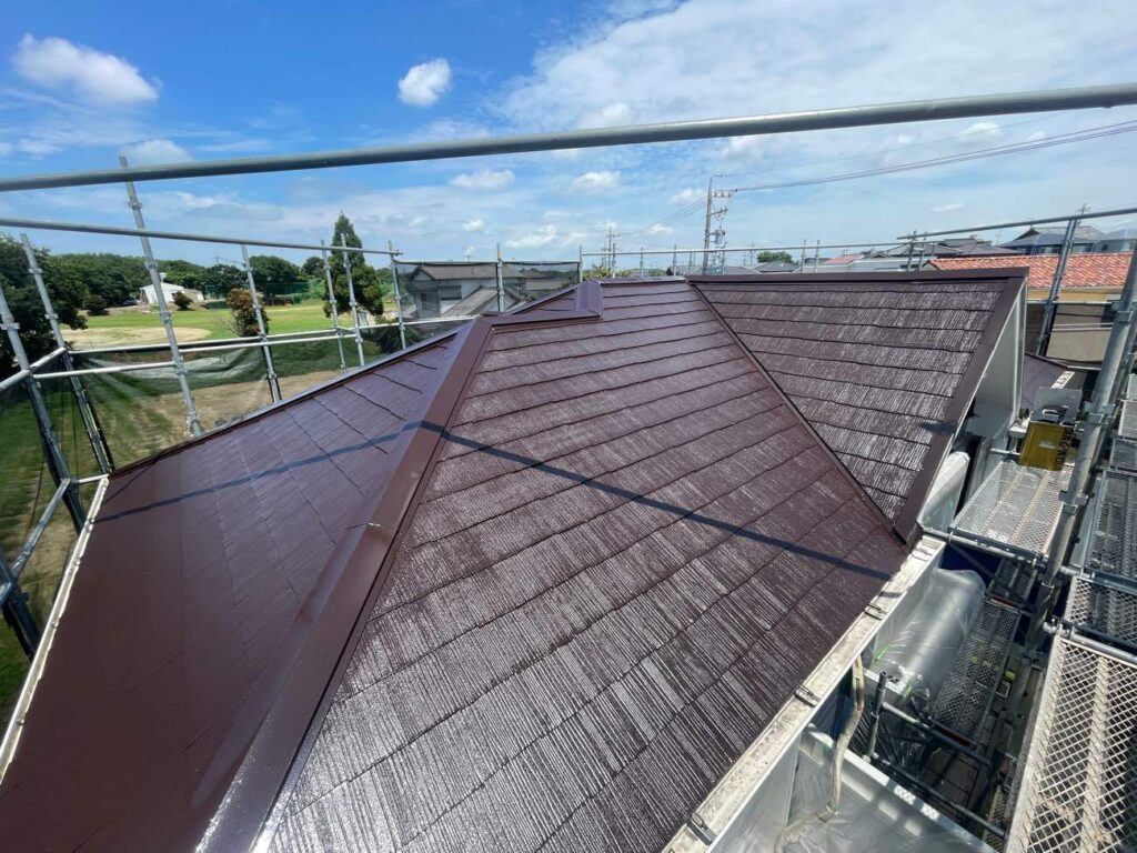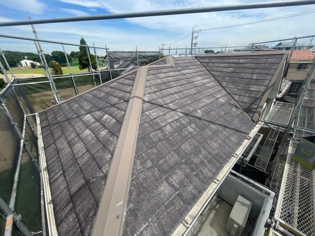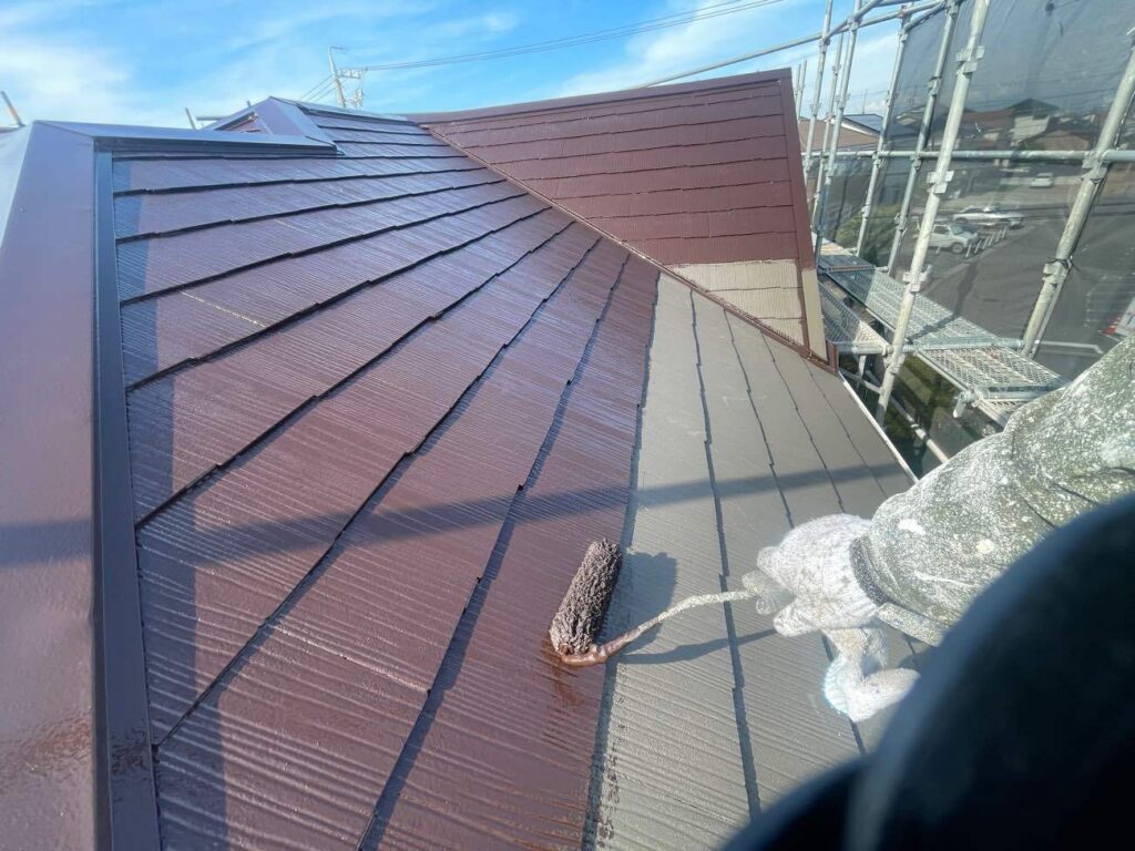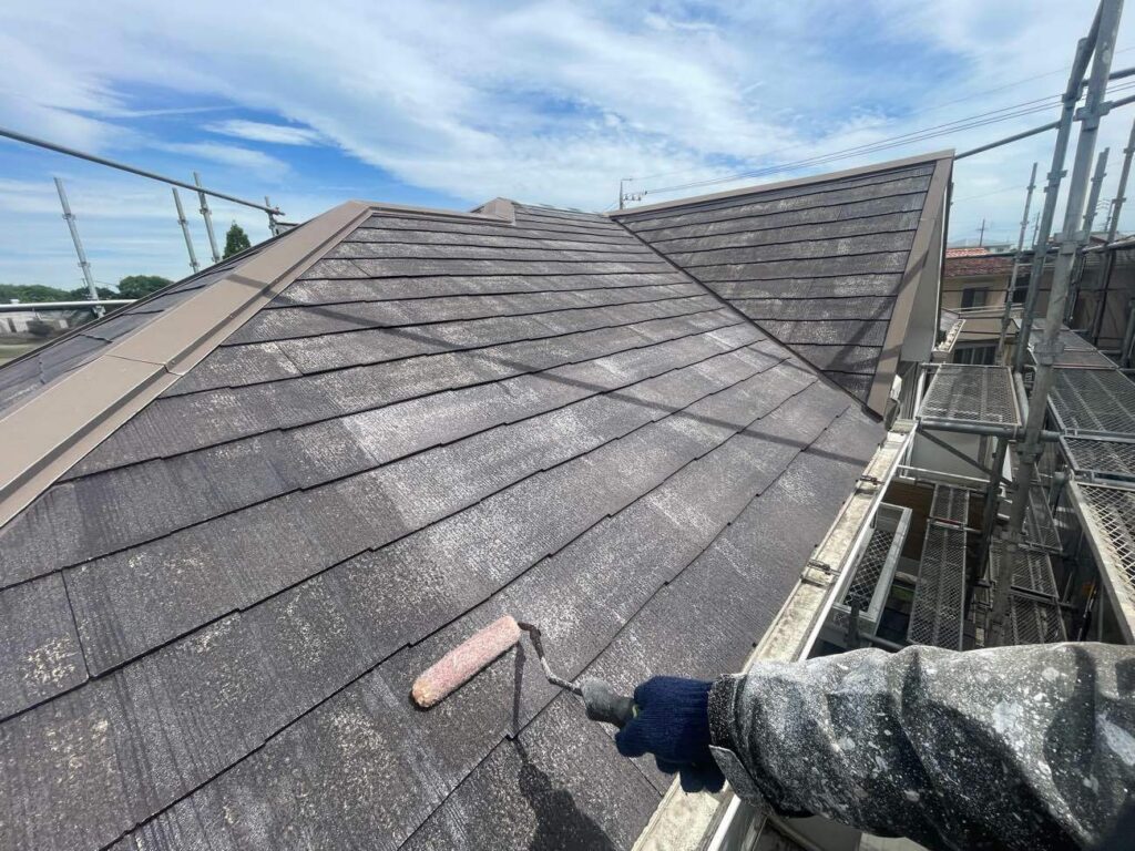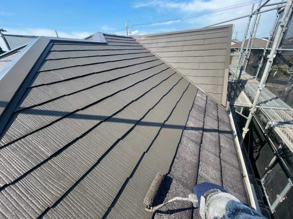 屋根塗装も外壁同様、3回塗りが基本です。屋根は建物の中でも紫外線や雨風の影響を受けやすい部分で、劣化が進みやすいです。塗装が劣化すると、防水性が低下し、雨漏りや下地の傷みにつながる恐れがあります。まず高圧洗浄で汚れや劣化した塗膜をしっかり除去し、下地を整えます。その後、下塗り・中塗り・上塗りの3回塗りを行い、塗膜に十分な厚みを持たせることで、屋根を長期間保護します。適切な塗料と施工工程を守ることで、美観の向上はもちろん、遮熱性や耐久性の向上にもつながり、建物全体の寿命を延ばします。