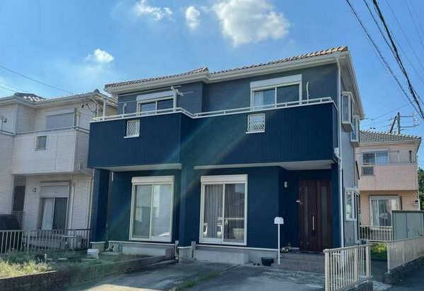 これまでのベージュ系外壁から、思い切って青系へ大幅にイメージチェンジした施工事例です。落ち着きのあるベージュの優しい雰囲気から、清潔感と存在感のある爽やかな外観へと生まれ変わりました。色味はガラッと変えつつも、建物の形状や周囲の景観とのバランスを考慮し、派手になりすぎない上品な青を採用。個性と調和を両立した外壁塗装となりました。