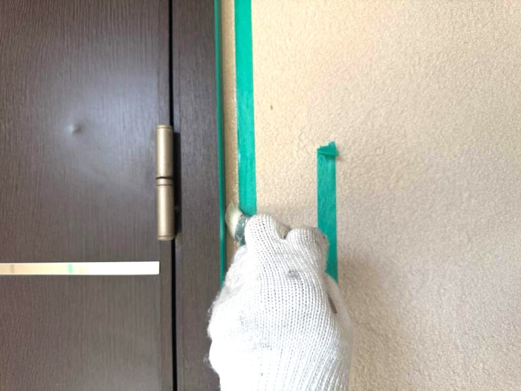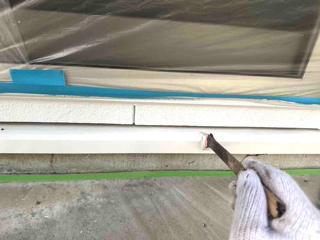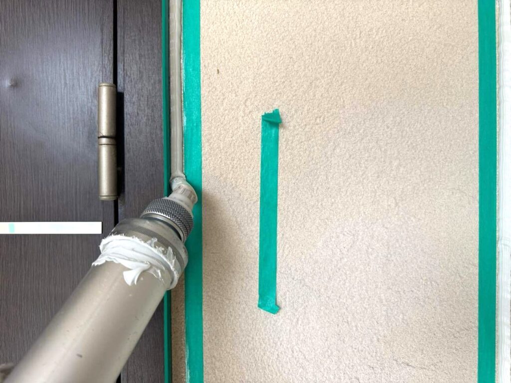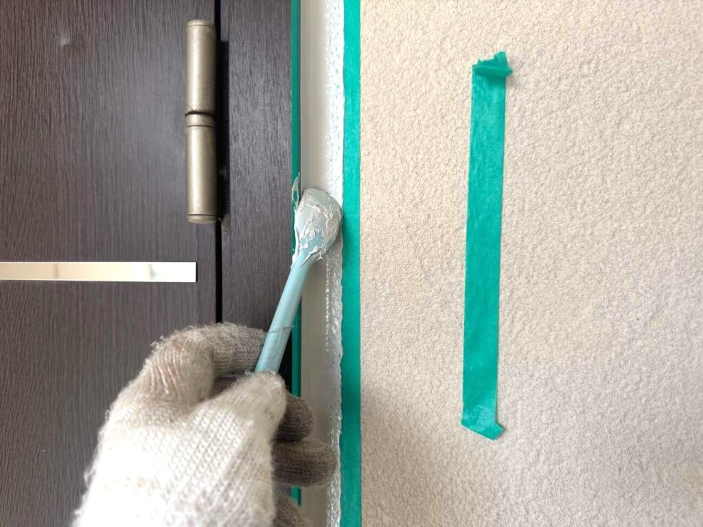 玄関ドアや勝手口などの開口部と外壁の取り合い部のコーキング(シーリング)下地処理を行います。構造上、性質の異なる建材が接するこの箇所には、必ず隙間が生じます。