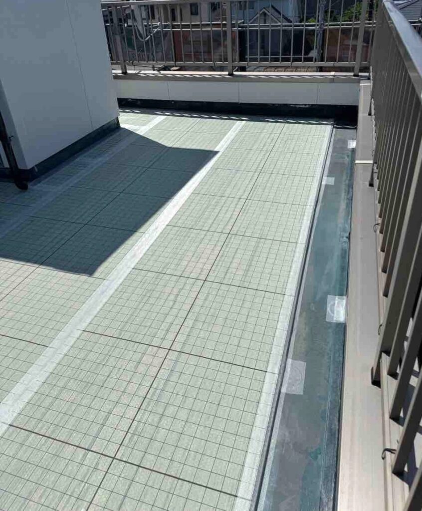 ウレタン樹脂を複数回に分けて塗り重ねることで、防水層の厚みを確保していきます。ウレタン樹脂は弾性に優れているため、建物の動きや揺れによるヒビ割れが起こりにくく、継ぎ目なく施工できることから防水性が高く雨漏りを効果的に防ぐことができます。