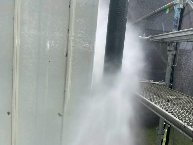 塗装工事の前に行う高圧洗浄は、外壁や屋根に付着した汚れ・ホコリ・カビ・コケ・古い塗膜を強い水圧でしっかり洗い流す大切な工程です。この工程を丁寧に行うことで塗料が外壁にしっかり密着し、仕上がりの美しさや耐久性が大きく向上します。