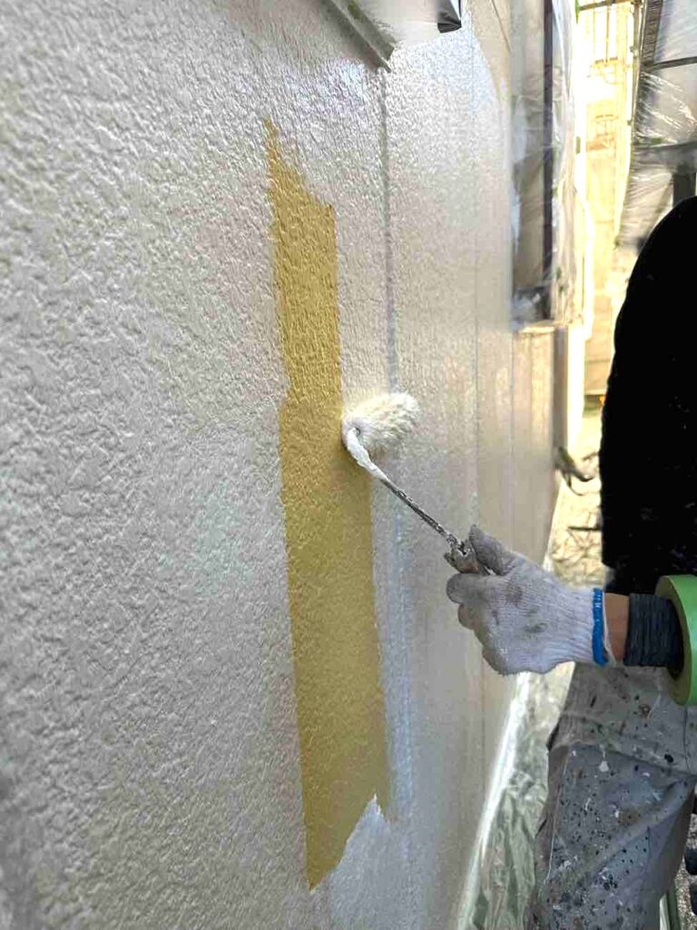 外壁塗装では、まず下塗りで外壁の表面を補強し、塗料との密着性を高めます。これにより微細なひび割れや吸水ムラを防ぎ、塗膜剥離のリスクを減らせます。続く中塗りでは、塗膜の厚みを均等に整え、外壁の強度や防水性能を強化。色味の安定化にも寄与し、仕上がりのムラや変色を防ぎます。最後の上塗りでは、耐候性や防汚性を付与し、紫外線や雨風から外壁を守る役割を果たします。この三層工程を丁寧に行うことで、外壁の耐久性、美観、保護性能がすべて高水準で実現し、長期間にわたる安心の塗装仕上げを可能にします。