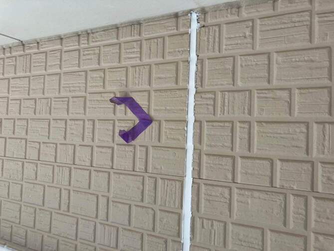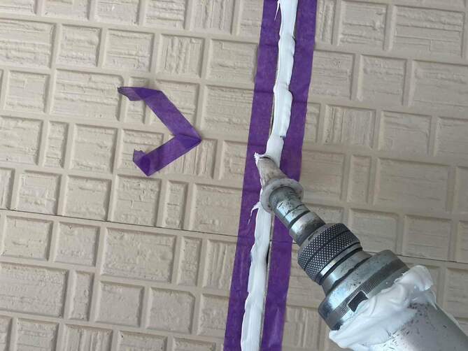 長年の紫外線や雨風の影響により、外壁目地のコーキングに劣化が見られました。ひび割れや硬化が進むと、防水機能が低下し、雨水が建物内部へ侵入する原因となります。既存のコーキングをすべて撤去し、新しいコーキングへ打ち替えを行い、外壁の防水性能をしっかり回復させました。
