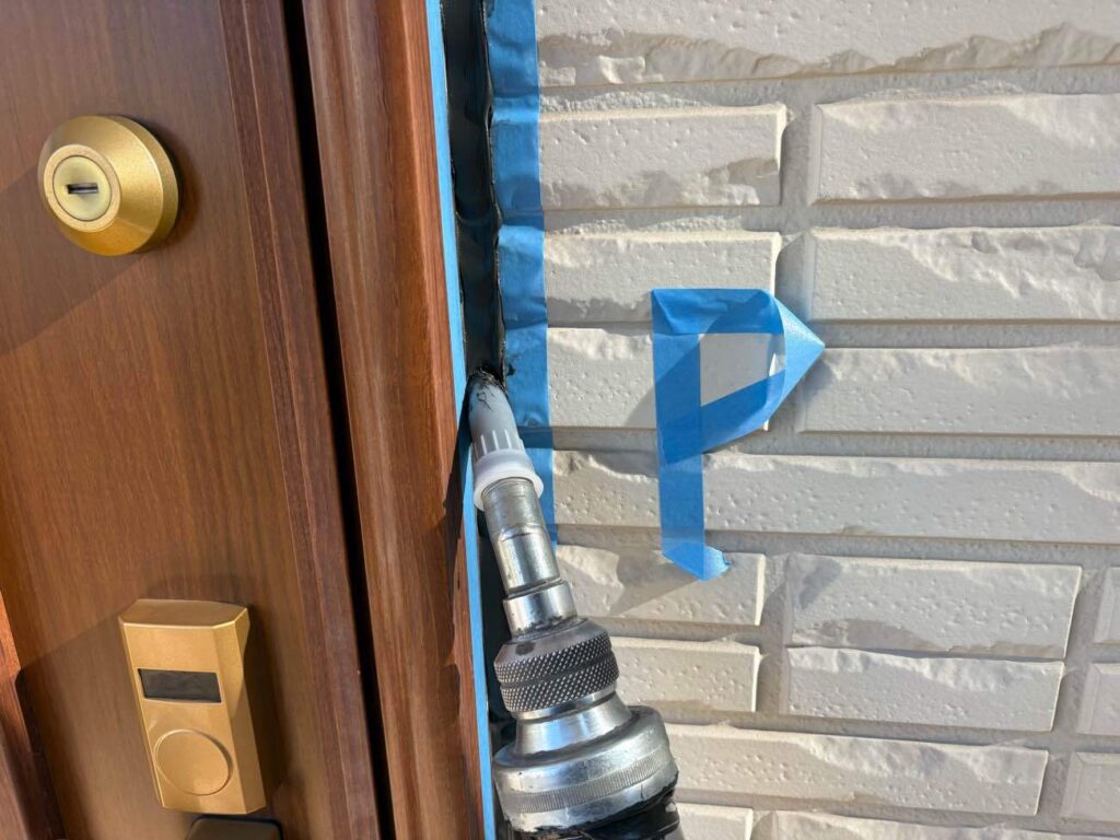 窓と外壁の間にはどうしても隙間ができます。この隙間にコーキング材を充填することで、雨水などの侵入を防ぎ、建物の内部を保護します。