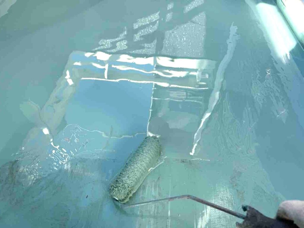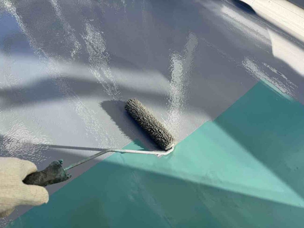 ウレタン樹脂を複数回に分けて塗り重ねることで、防水層の厚みを確保していきます。ウレタン樹脂は弾性に優れているため、建物の動きや揺れによるヒビ割れが起こりにくく、継ぎ目なく施工できることから防水性が高く雨漏りを効果的に防ぐことができます。