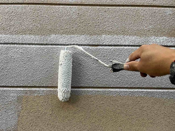 外壁塗装は、下塗り・中塗り・上塗りの3回塗りが基本です。その理由は、住まいをしっかり守り、キレイな状態を長く保つためです。まずは最初の“下塗り”。ここで外壁と塗料がしっかりくっつくように、接着の役割をもちます。次に“中塗り”と“上塗り”で、色を重ねながら塗膜を丈夫にしていきます。重ね塗りすることで厚みが出て、雨や紫外線に負けない強い壁が完成します。3回塗りは、見た目の美しさと耐久性の両方を叶えるために欠かせない工程です。