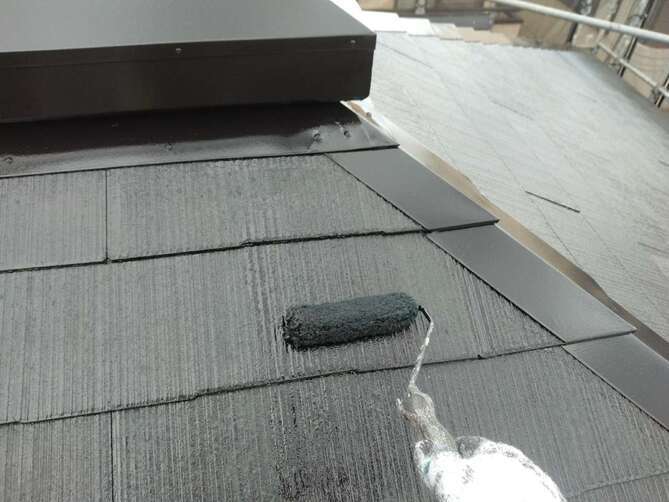 屋根塗装も外壁同様、3回塗りが基本です。屋根は建物の中でも紫外線や雨風の影響を受けやすい部分で、劣化が進みやすいです。塗装が劣化すると、防水性が低下し、雨漏りや下地の傷みにつながる恐れがあります。まず高圧洗浄で汚れや劣化した塗膜をしっかり除去し、下地を整えます。その後、下塗り・中塗り・上塗りの3回塗りを行い、塗膜に十分な厚みを持たせることで、屋根を長期間保護します。適切な塗料と施工工程を守ることで、美観の向上はもちろん、遮熱性や耐久性の向上にもつながり、建物全体の寿命を延ばします。