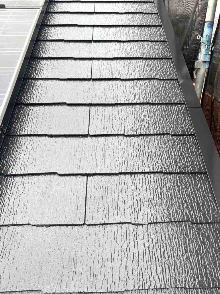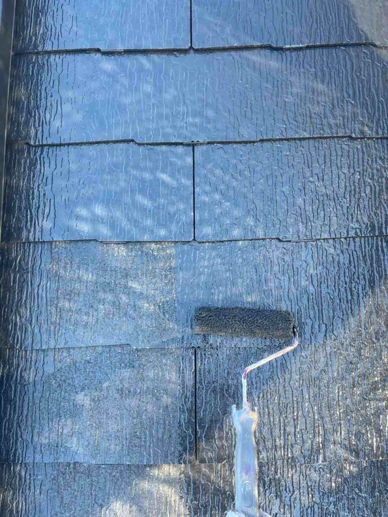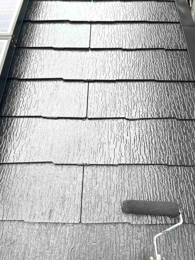 屋根塗装は下塗り・中塗り・上塗りの三段階で行うことで、耐久性と美観を両立します。下塗りでは、屋根材の劣化部分を補強し、塗料の密着を高める下地材を塗布します。これにより塗膜の剥がれや早期劣化を防ぎ、長持ちする基盤を作ります。中塗りは塗膜の厚みと色の均一化を行い、仕上がりの強度と耐久性を高めます。最後の上塗りでは、紫外線や雨風から屋根を守る保護機能を付与し、光沢や美しい色合いを整えます。三層の塗膜構造で屋根全体をしっかり保護し、長期間にわたり安心できる屋根に仕上がります。