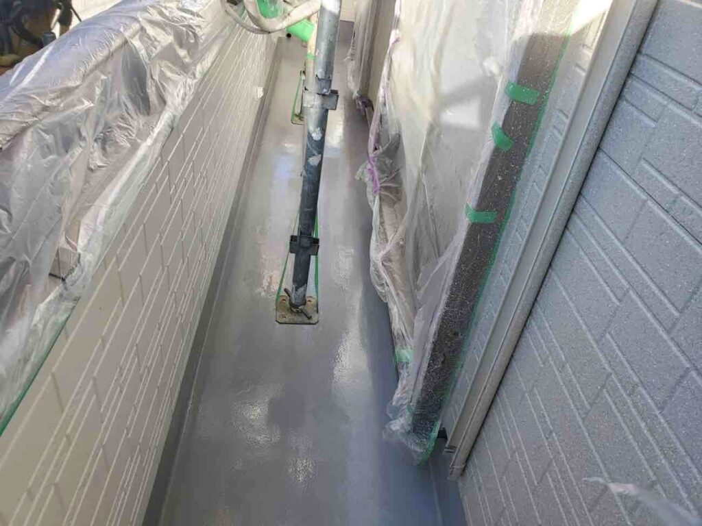 まず、ケレンや清掃でサビや浮いた旧塗膜を除去し、塗料の密着性を高めます。次に、下塗りとしてサビ止めなどを塗布し、サビの発生を抑制して塗料の吸い込みを防ぎます。そして、上塗りを2回重ねることで、紫外線や雨風から建物をしっかりと保護します。プロの職人による丁寧な施工は、仕上がりの美しさだけでなく、下地処理から塗り重ねの厚み、乾燥時間までを正確に見極めることで、ムラのない均一な塗膜を形成し期間にわたり付帯部を守ることができます。