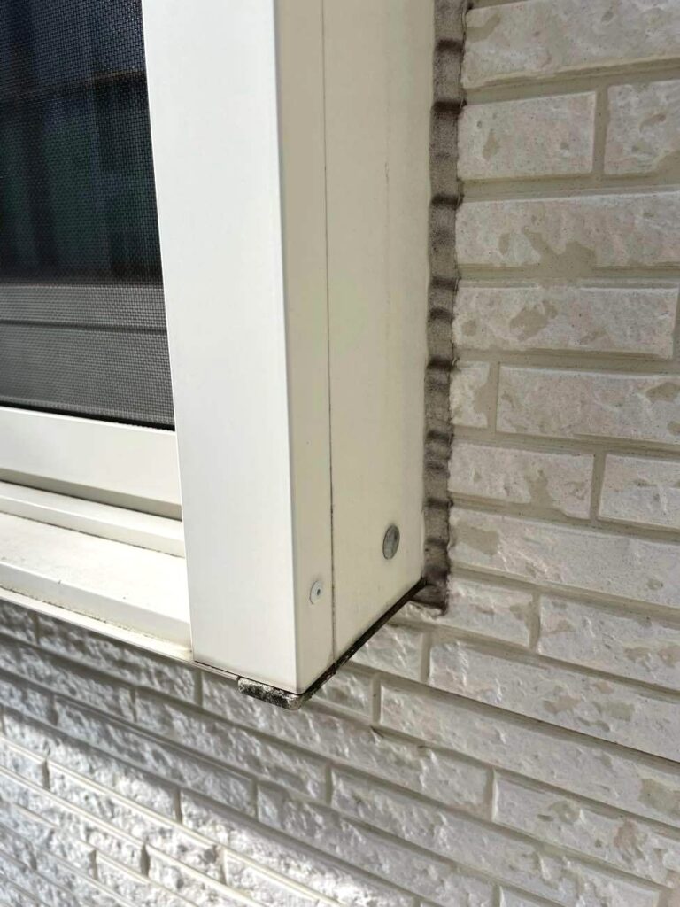 玄関ドアや勝手口などの開口部と外壁の取り合い部のコーキング(シーリング)下地処理を行います。構造上、性質の異なる建材が接するこの箇所には、必ず隙間が生じます。