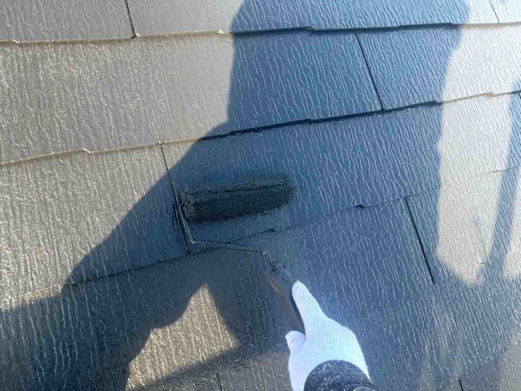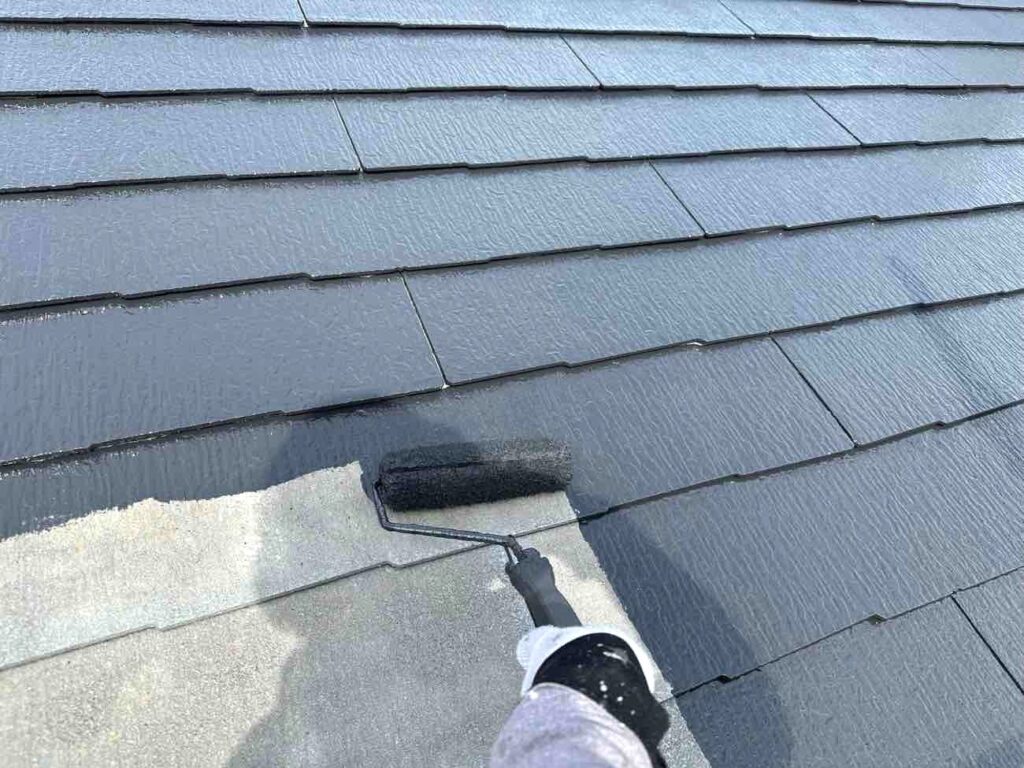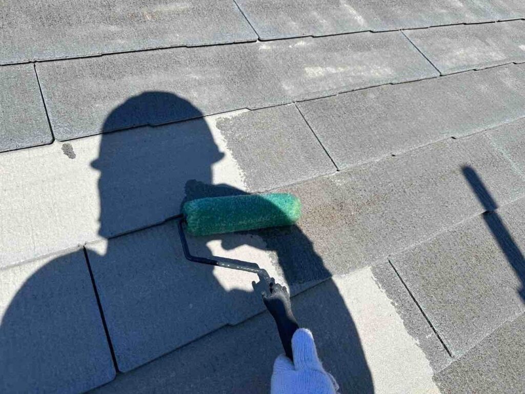 屋根塗装では、下塗りで屋根材と塗料をしっかり密着させ、ひび割れや吸水ムラを補修します。中塗りでは塗膜の厚みを均一に重ね、耐久性や防水性を強化。下塗りで整えた基盤に密着することで、塗料の効果を最大限に引き出します。上塗りでは紫外線や雨風による劣化を防ぎ、屋根を長期間守ります。三層構造により、見た目の美しさと防水・耐候性能が両立し、屋根全体の寿命を延ばすことができます。丁寧な3回塗りで、安心の屋根塗装を実現します。