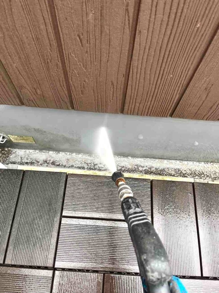 その後、外壁や屋根に付着したホコリやコケ、汚れを高圧の水でしっかり洗い流し、塗装に適した状態へ整えます。下地を清潔にすることで、仕上がりの美しさと塗料の性能をしっかり引き出せます。