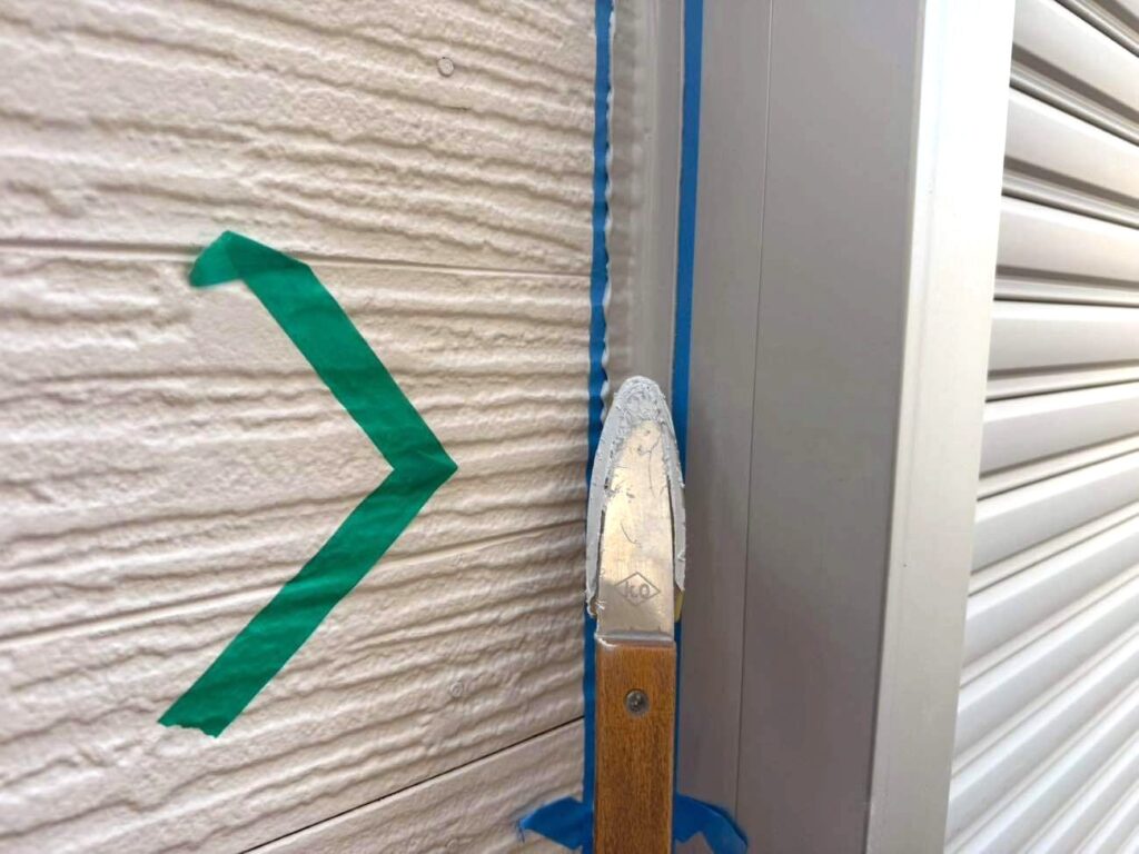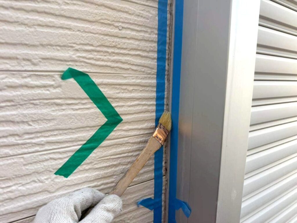 窓や玄関まわりの接合部分にコーキングを施工し、細かなすき間を丁寧に埋めていきます。振動や温度変化の影響を受けやすい箇所のため、柔軟性のある材料でしっかり仕上げます。水の侵入口になりやすい部分を重点的に保護し、雨漏りを防ぐための対策を行っています。