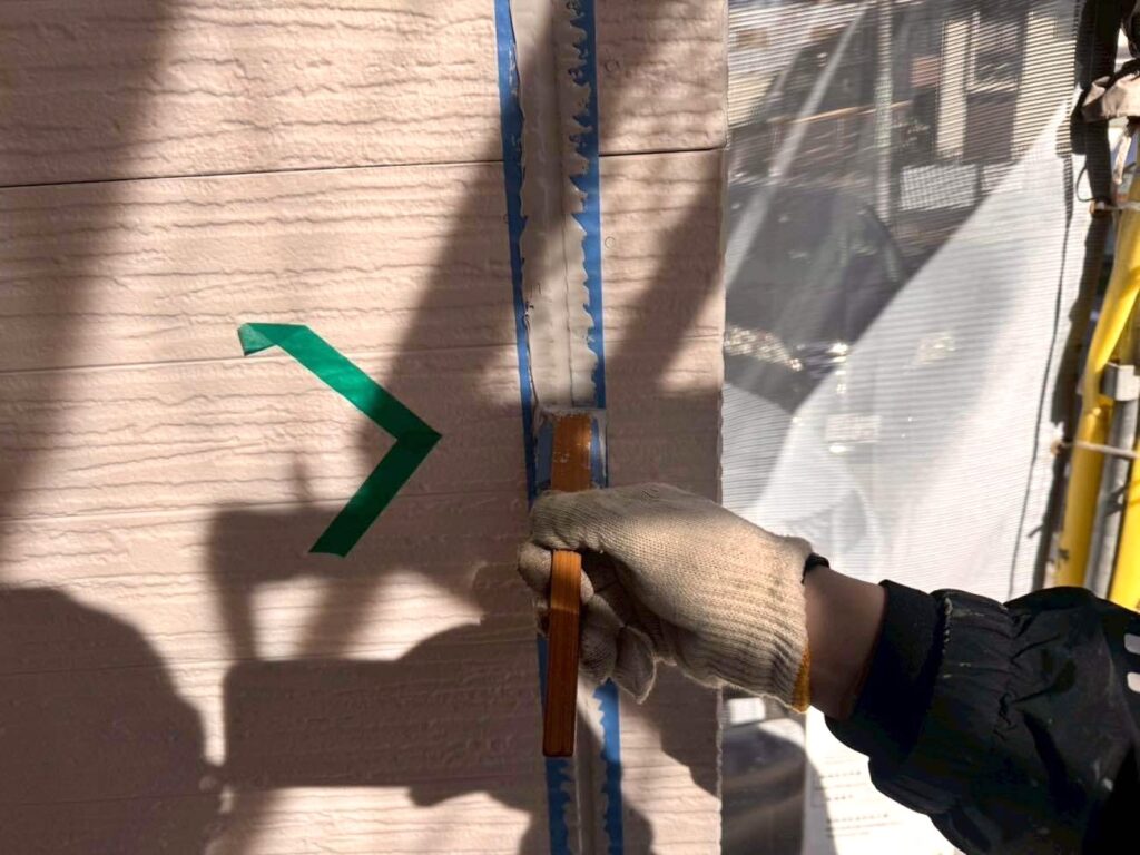 外壁材同士のすき間にコーキング材を充填し、建物の動きに合わせて割れにくい状態に整えていきます。劣化していた部分は撤去し、新しい材料で打ち替えることで防水機能を回復させます。外壁全体のすき間をしっかり保護することで、雨水の侵入を防ぎ、建物の劣化を抑える役割を果たします。