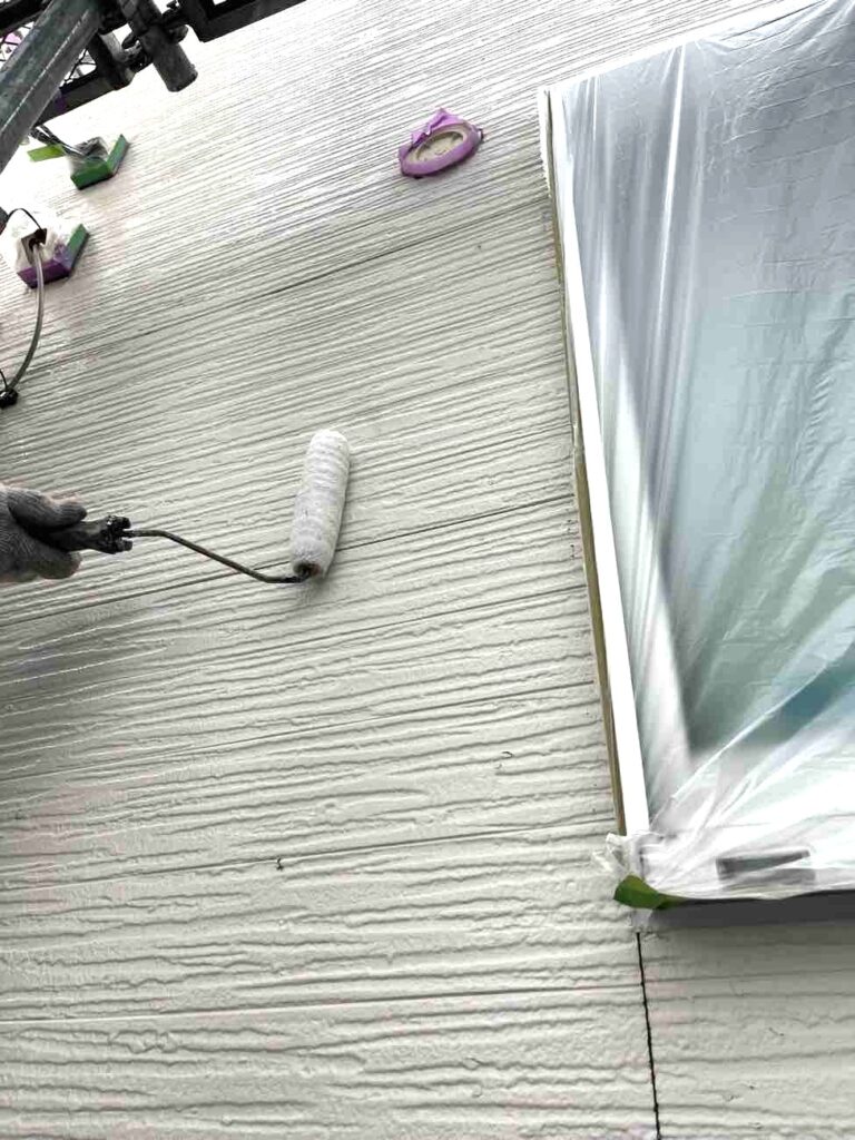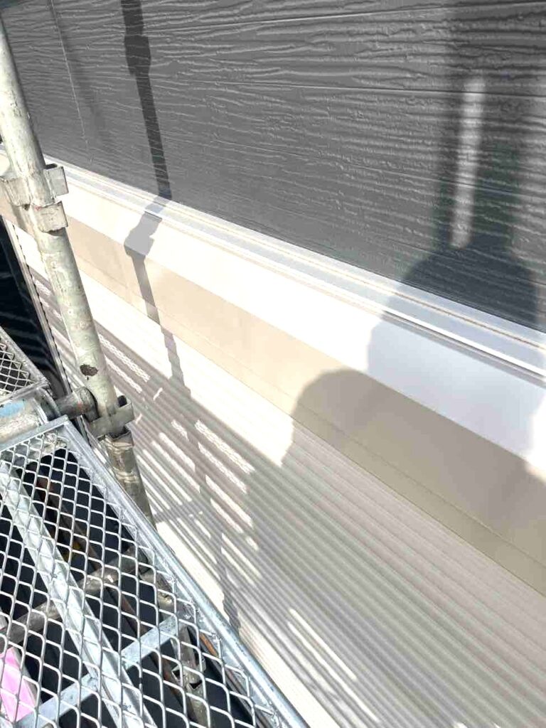 下地処理を行った後、外壁の状態に合わせて下塗りをし、塗料の密着性を高めます。その上から中塗り・上塗りと重ねることで、色ムラのない美しい仕上がりに整えていきます。塗膜に厚みを持たせることで、外壁を雨風や紫外線からしっかり保護し、耐久性の向上にもつなげています。見た目の美しさと住まいを守る機能性の両立を意識した施工を行いました。