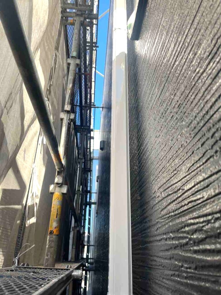 外観の印象を変えたいというご希望に合わせ、建物の形がきれいに映えるグレーカラーをご提案いたしました。汚れが目立ちにくく、長くきれいに見える色味を選定して、下地処理から仕上げまで丁寧に施工いたしました。合わせて付帯部の塗装やベランダ防水工事も行い、見た目と耐久性の両面をしっかりと整えています。