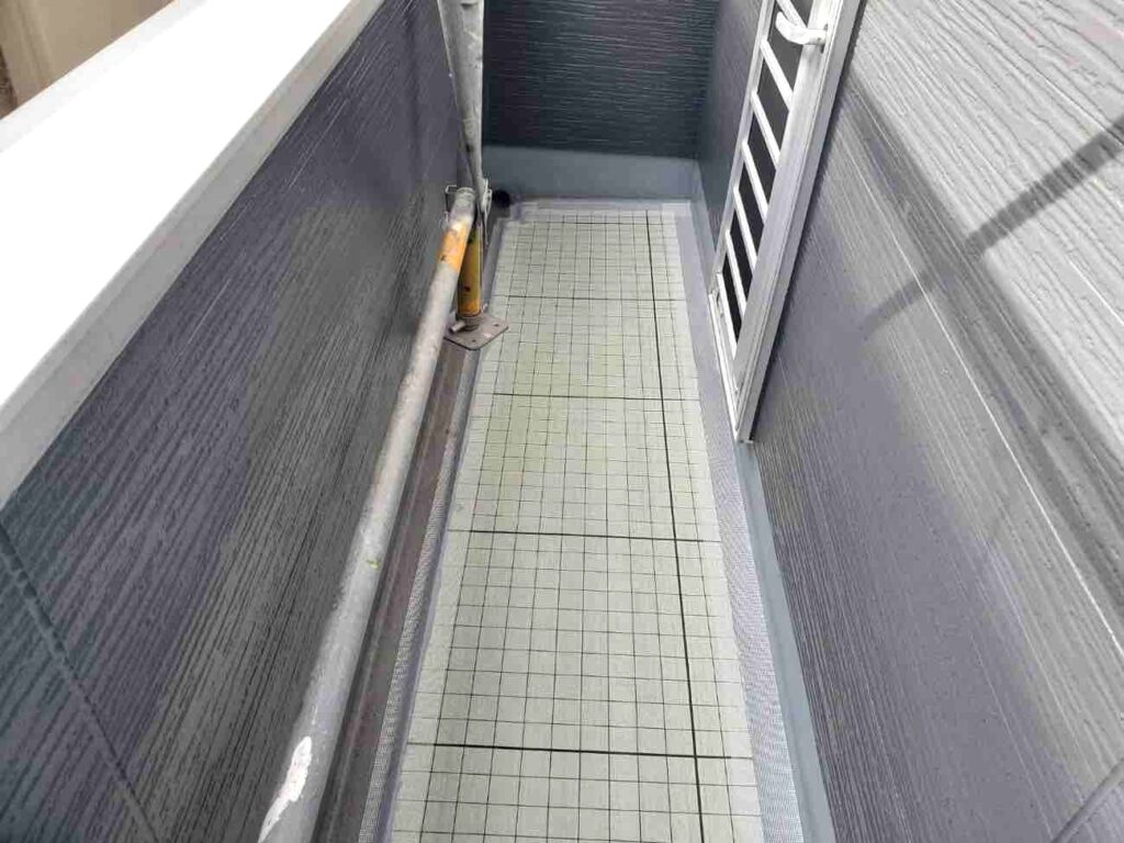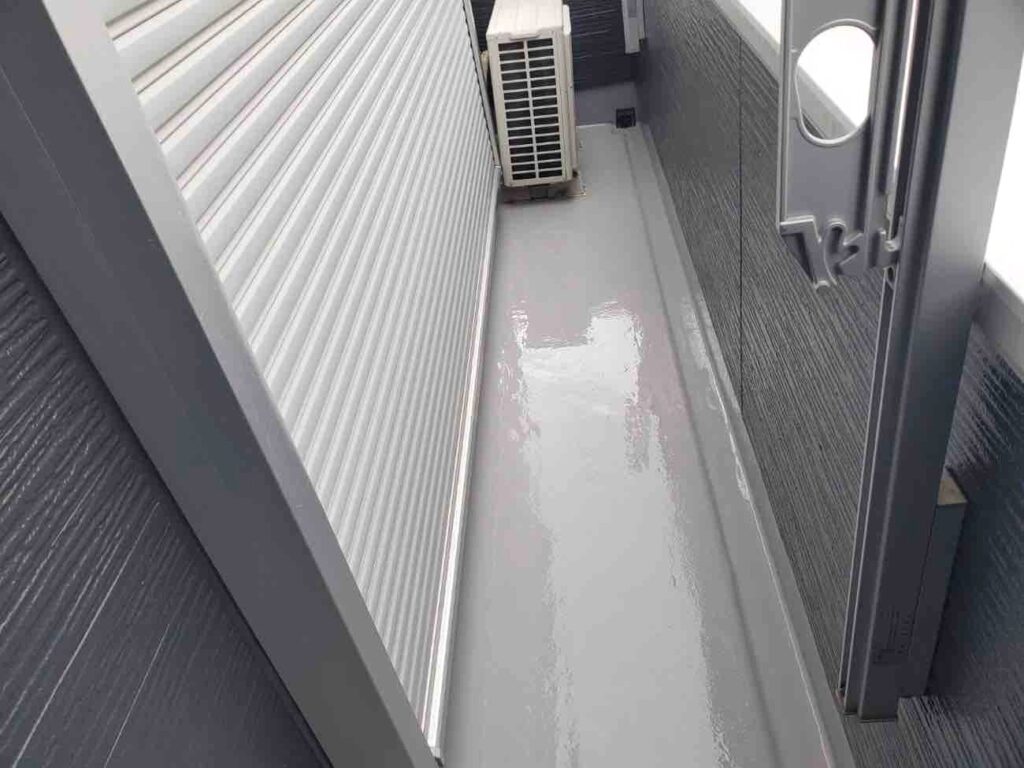 ベランダ床の汚れや劣化部分を確認し、下地を整えてから防水材を施工しました。防水層をしっかり形成することで、雨水の侵入を防ぎ、建物内部のダメージを抑えます。表面には保護仕上げを行い、ひび割れや摩擦にも強い状態へ整えました。長く安心して使える空間へと仕上げています。