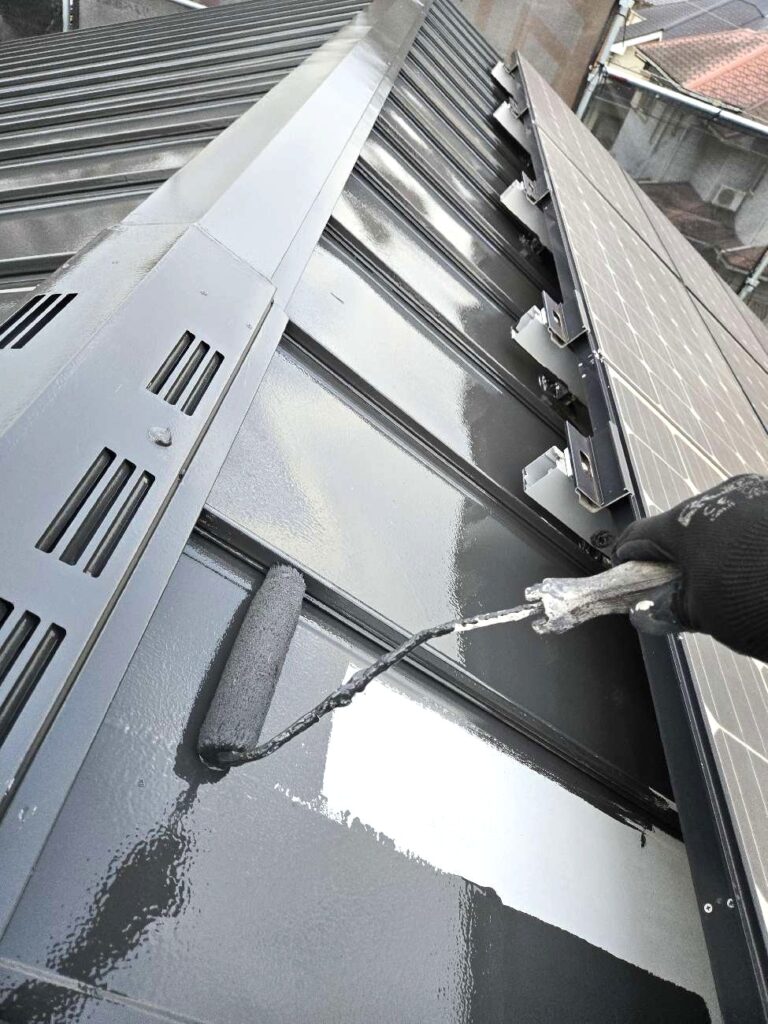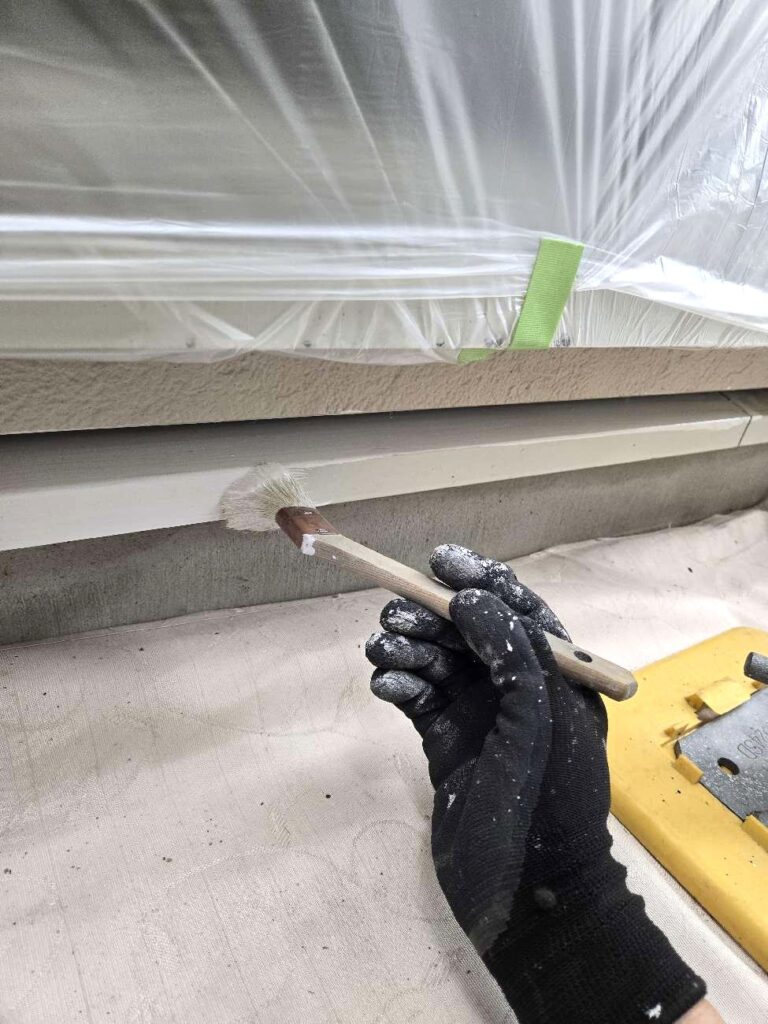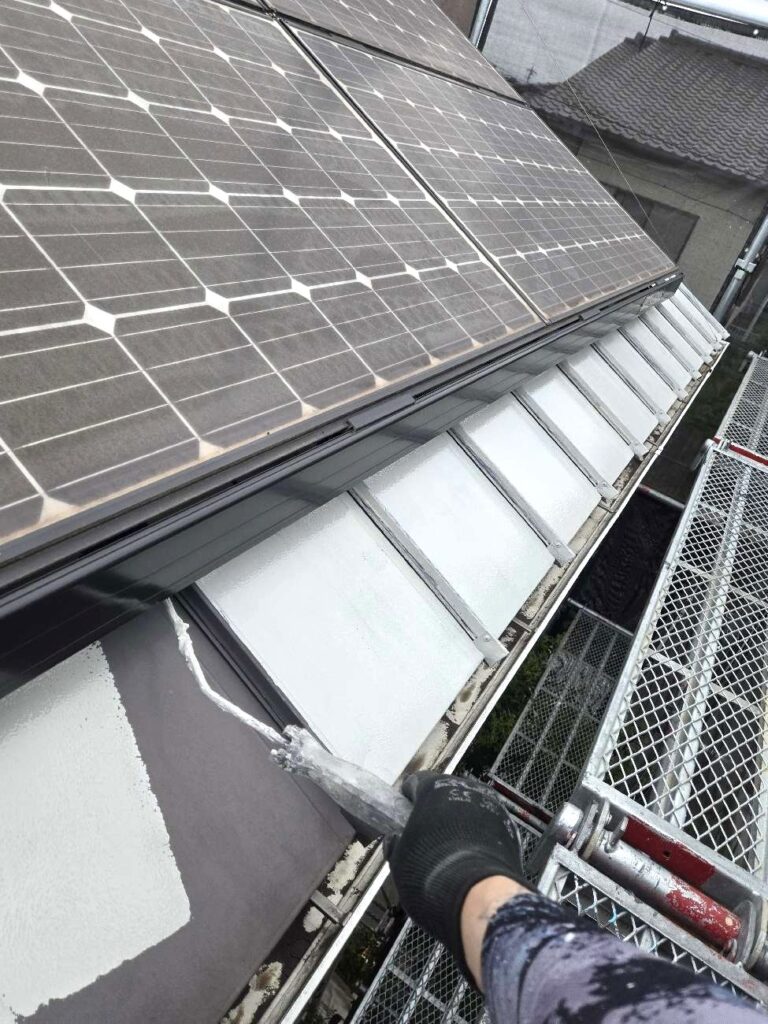 屋根は外壁以上に過酷な紫外線や雨に晒される場所です。まずは下塗りで傷んだ屋根材を補強し、中塗り・上塗りで高日射反射率を持つ遮熱塗料などを塗布します 。また、重要なのが「縁切り」作業です。塗料で屋根の重なり目が塞がると、内部に水が溜まり雨漏りの原因になります。タスペーサーという部材を挿入して適切な隙間を確保するこの一手間が、数年後の屋根の状態を大きく左右します。